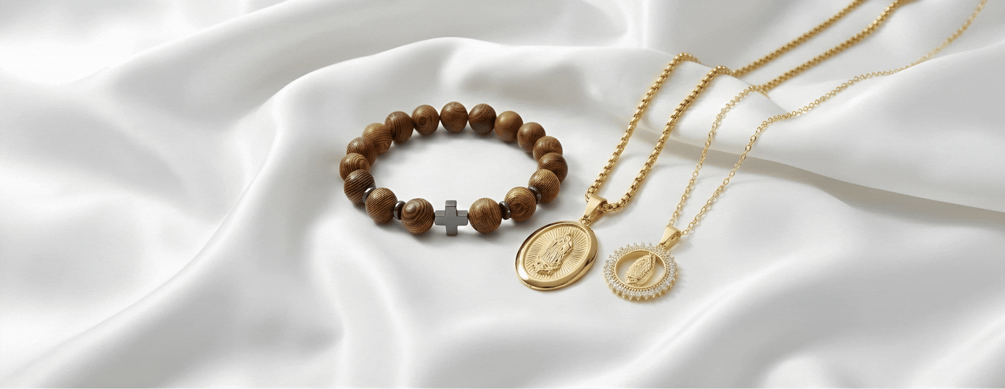 Pulsera de Cruz para hombre, Rosario religioso, cuentas de madera, pulsera de cu