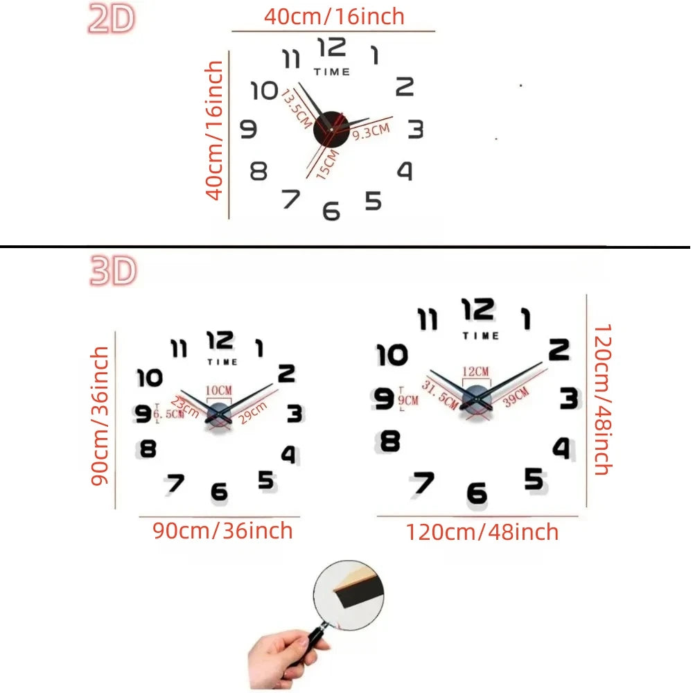 Reloj de pared grande 3D de diseño moderno, cronógrafo de cuarzo artesanal, pegatinas de espejo acrílico, decoración del hogar y sala de estar, 2024 Reloj de pared grande 3D de diseño moderno, cronógrafo de cuarzo artesanal, pegatinas de espejo acrílico, decoración del hogar y sala de estar, 2024