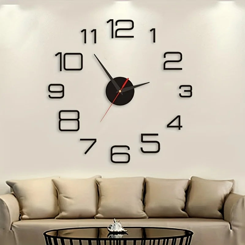 Reloj de pared grande 3D de diseño moderno, cronógrafo de cuarzo artesanal, pegatinas de espejo acrílico, decoración del hogar y sala de estar, 2024