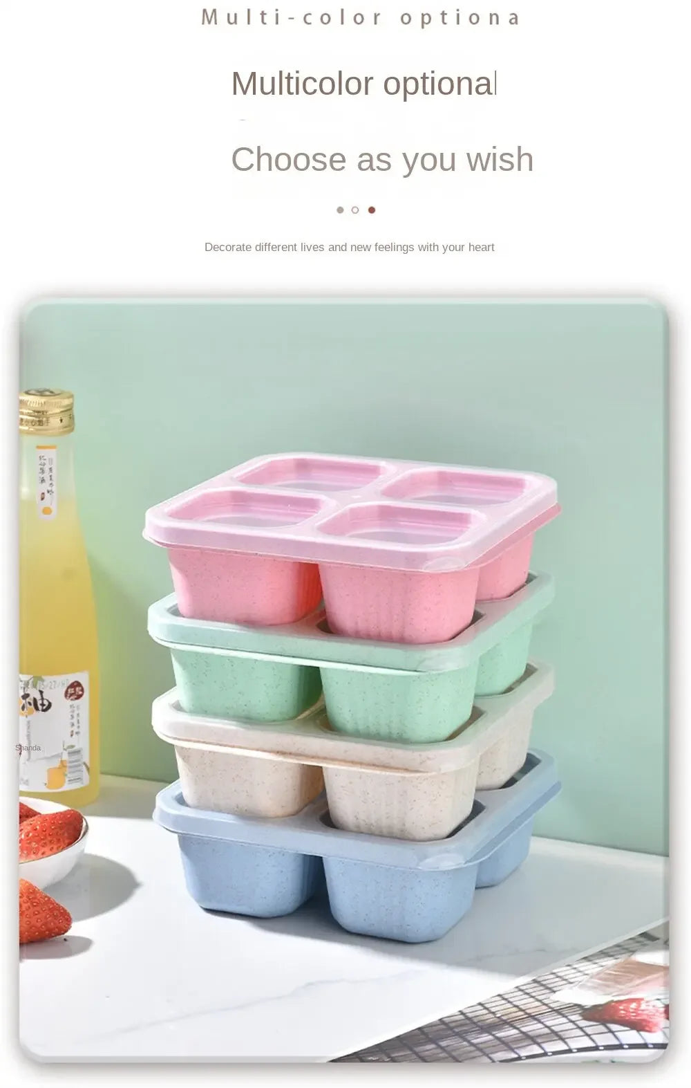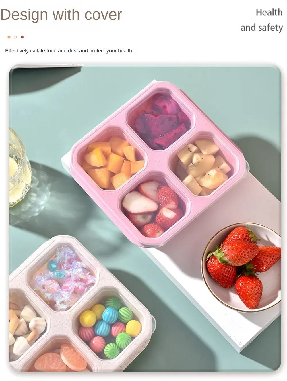Contenedores de aperitivos reutilizables para niños y adultos, herramienta de cocina portátil, almacenamiento de aperitivos para el hogar, 4 rejillas Contenedores de aperitivos reutilizables para niños y adultos, herramienta de cocina portátil, almacenamiento de aperitivos para el hogar, 4 rejillas