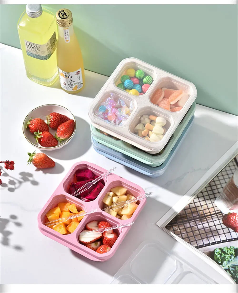 AgotadoContenedores de aperitivos reutilizables para niños y adultos, herramienta de cocina portátil, almacenamiento de aperitivos para el hogar, 4 rejillas
