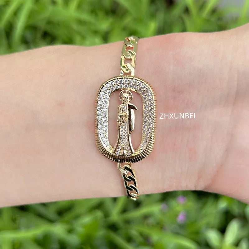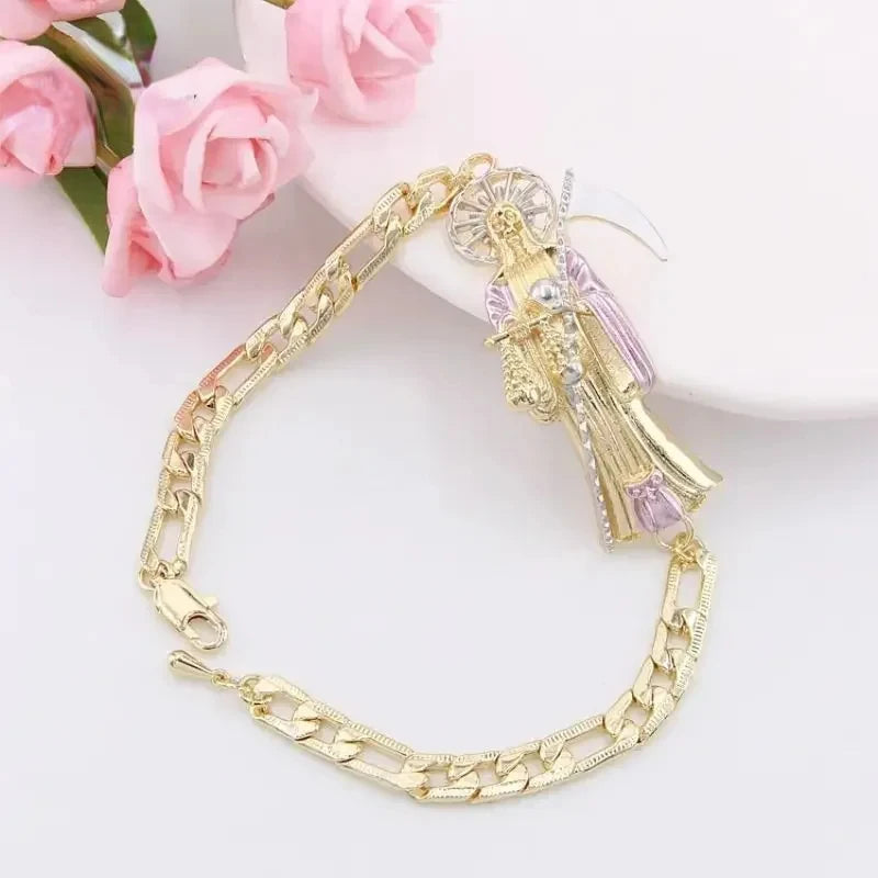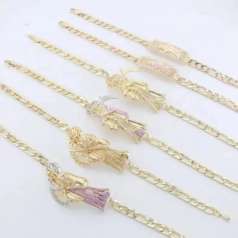 Pulsera de la suerte para hombre, joyería de Oro Laminado, pulsera religiosa de