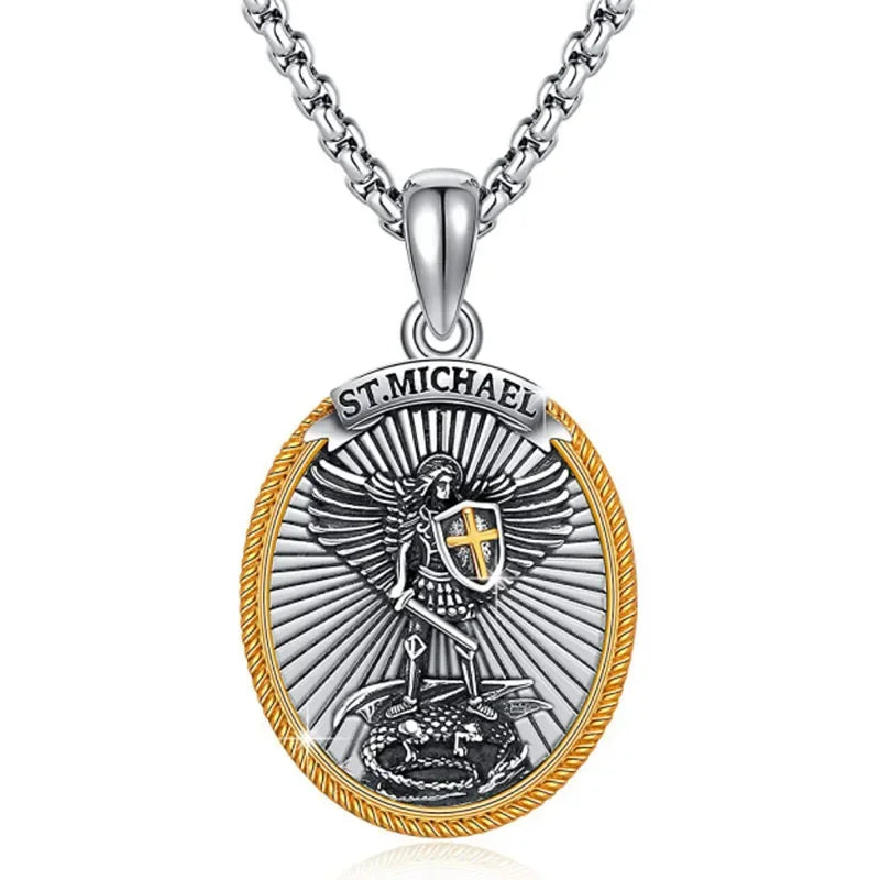 Joyería católica de acero inoxidable, colgante de San Miguel, el Arcángel, co Joyería católica de acero inoxidable, colgante de San Miguel, el Arcángel, co