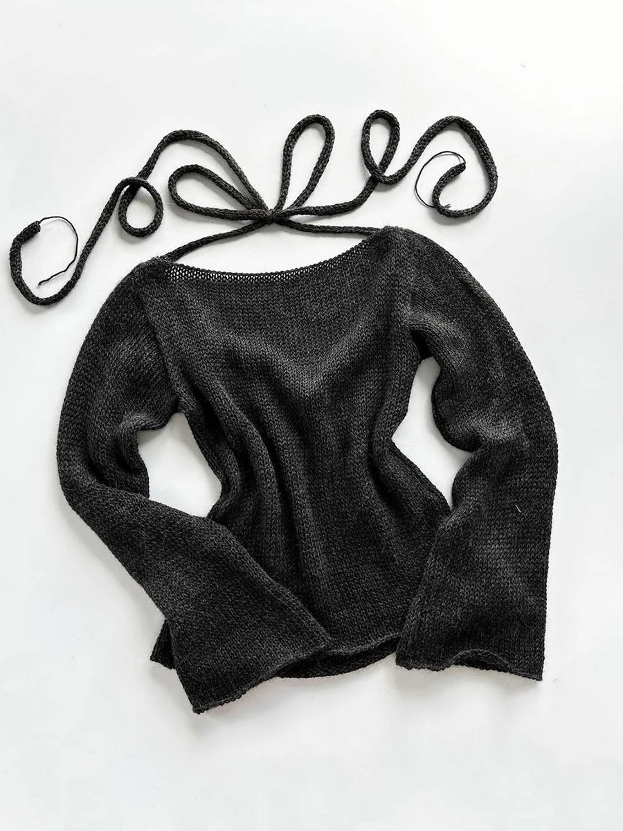 AgotadoY2K-suéteres de manga larga con lazo en la espalda para mujer, Jersey de punto