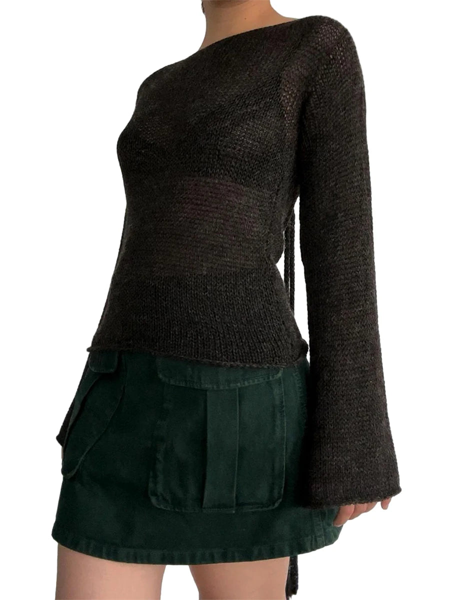 Y2K-suéteres de manga larga con lazo en la espalda para mujer, Jersey de punto Y2K-suéteres de manga larga con lazo en la espalda para mujer, Jersey de punto