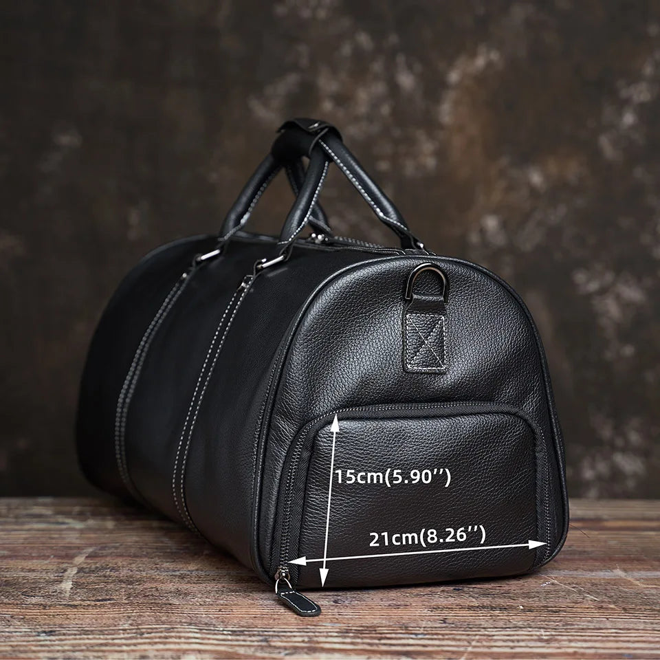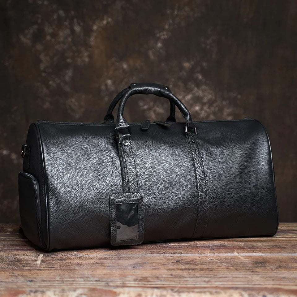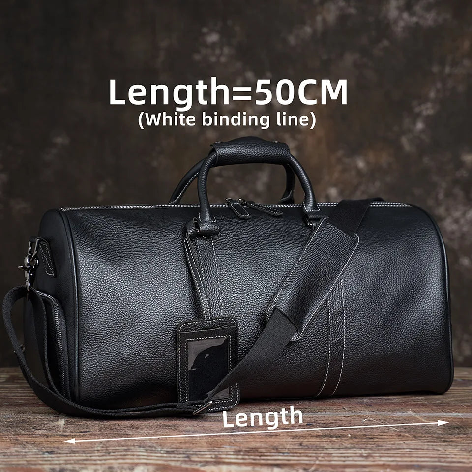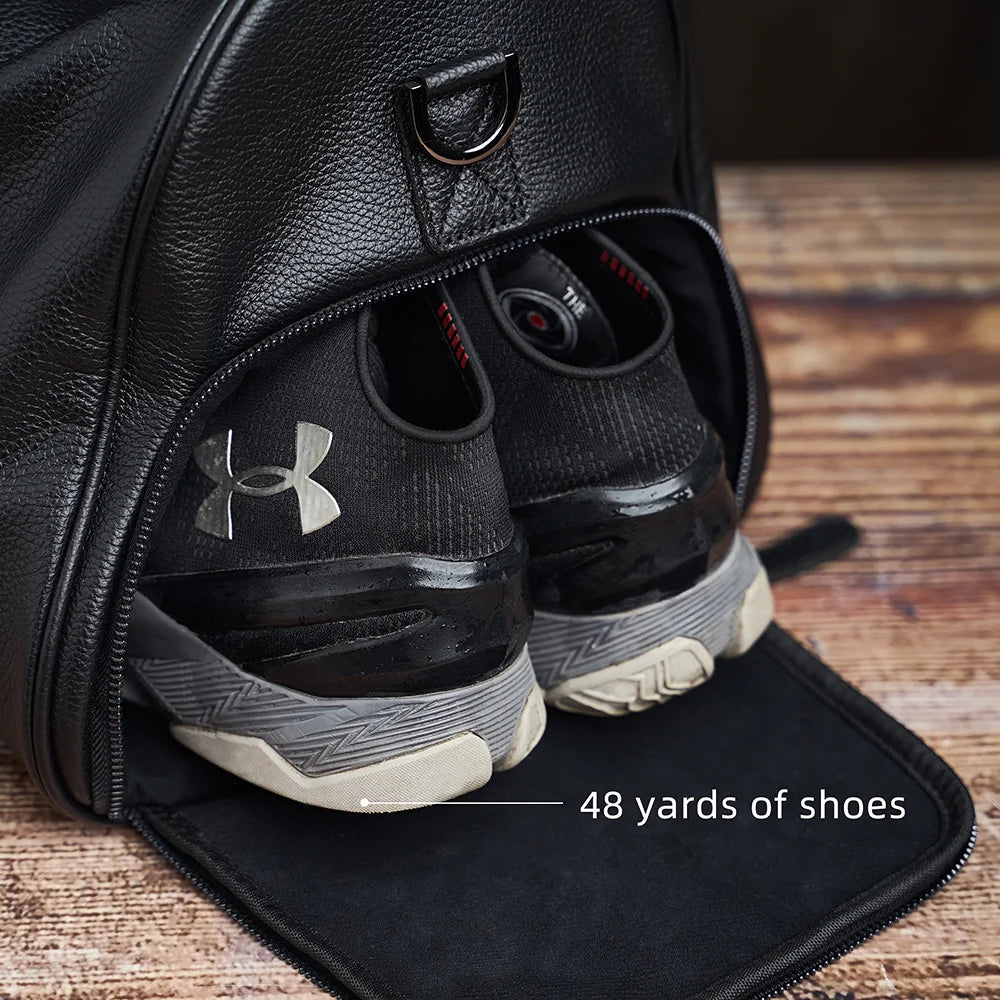 NUPUGOO-Bolso de viaje para hombre, bolsa de equipaje de mano informal de cuero genuino, de alta capacidad, bolsillo para zapatos y hombro, para portátil de 17 pulgadas