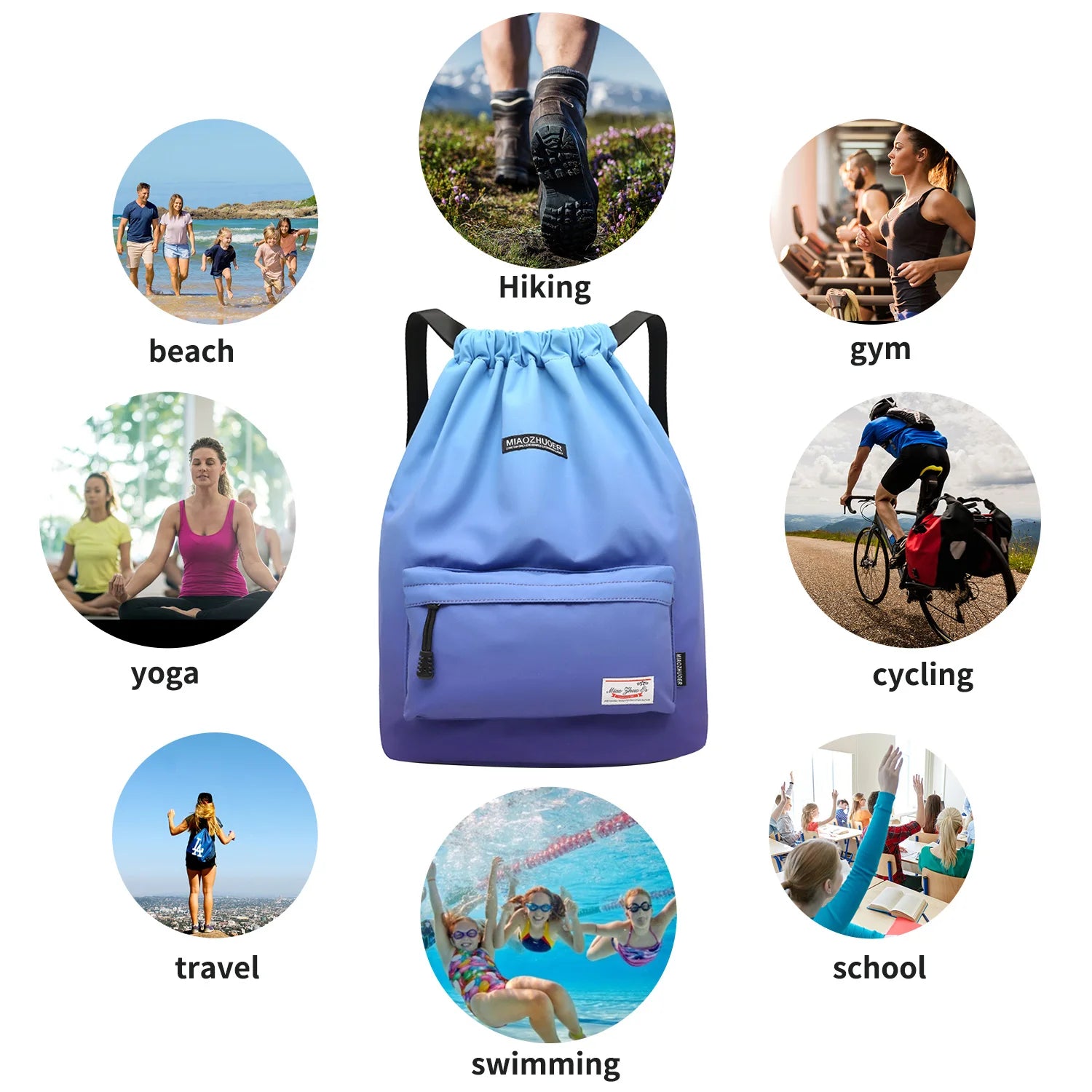 Mochila de deporte para gimnasio, bolsa deportiva impermeable con cordón perfecta para actividades en el exterior, accesorio ideal para entrenamiento, fitness y natación, para verano