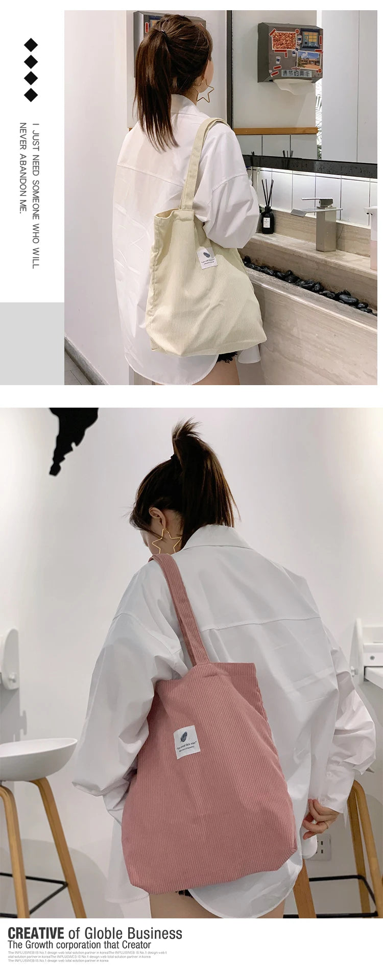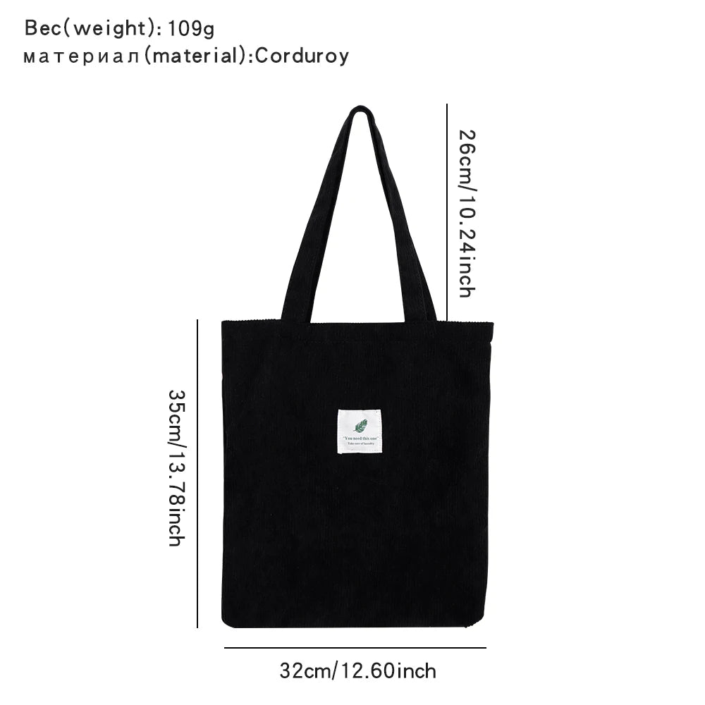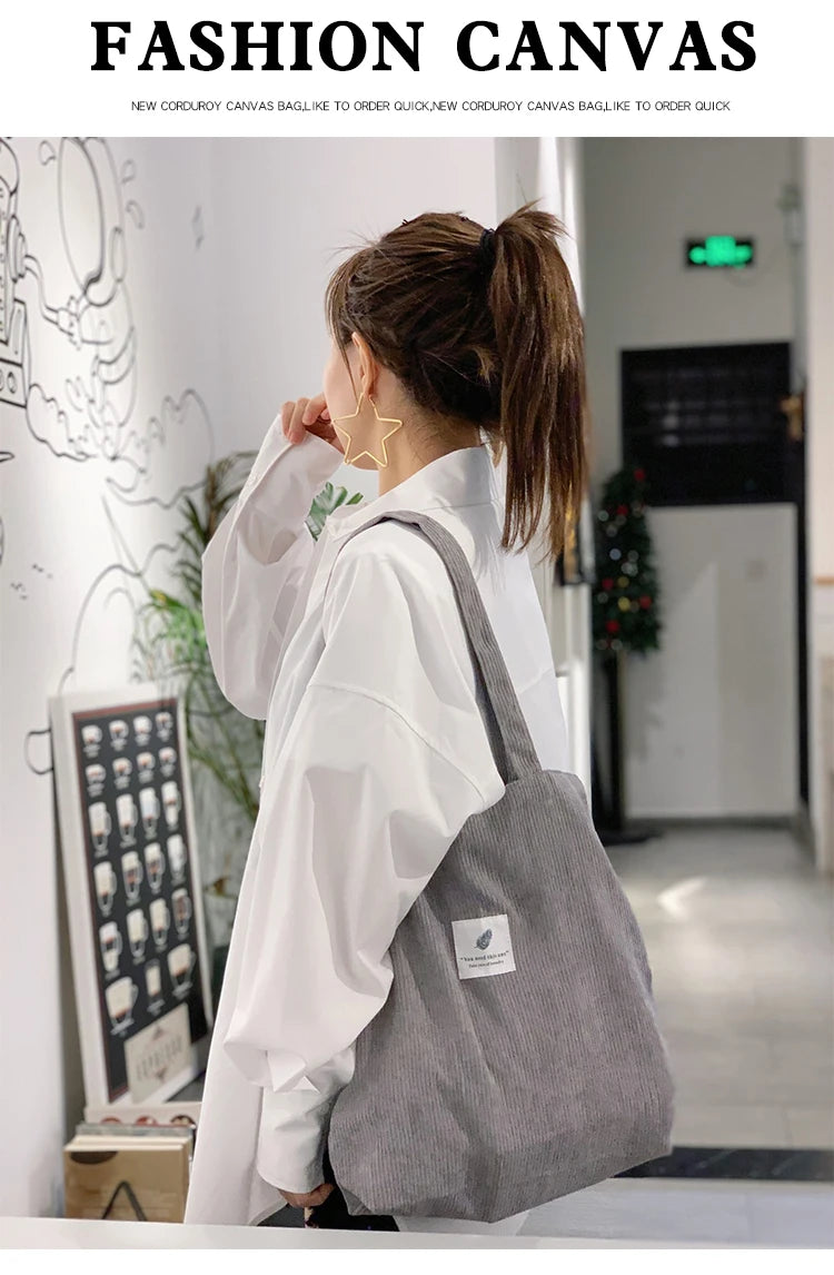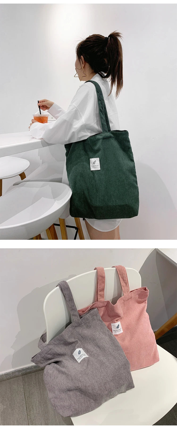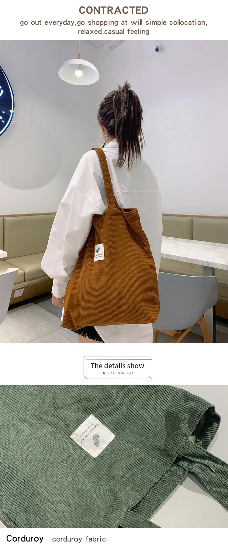 Sold outBolso de pana para mujer, bolsa de hombro de lona reutilizable, de almacenamiento ambiental, para la escuela, regalo de Navidad