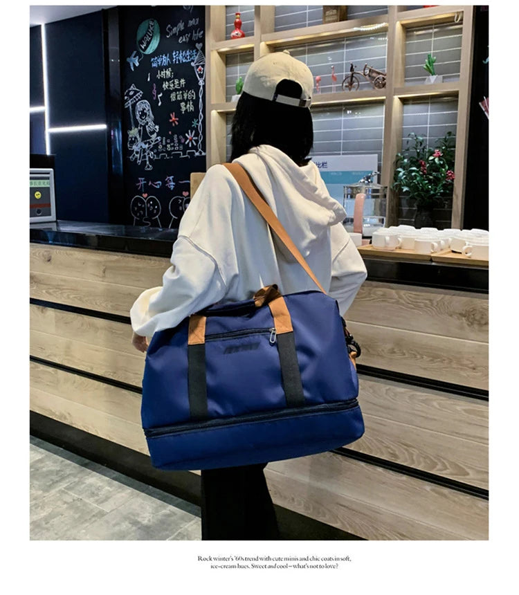 Sold outBolsa de equipaje de viaje Oxford impermeable para hombre, bolso de mano Boston multifuncional, separación seca y húmeda, bolso de hombro deportivo para gimnasio
