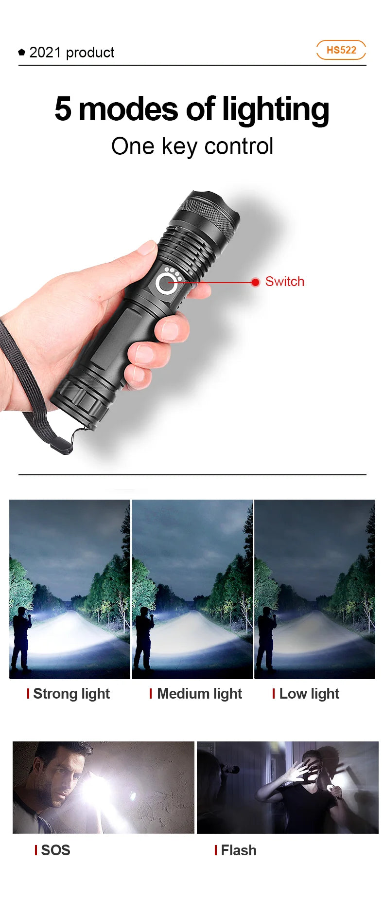 Linterna táctica de gran alcance para exteriores, linterna LED de alta potencia, recargable por USB, resistente al agua Linterna táctica de gran alcance para exteriores, linterna LED de alta potencia, recargable por USB, resistente al agua