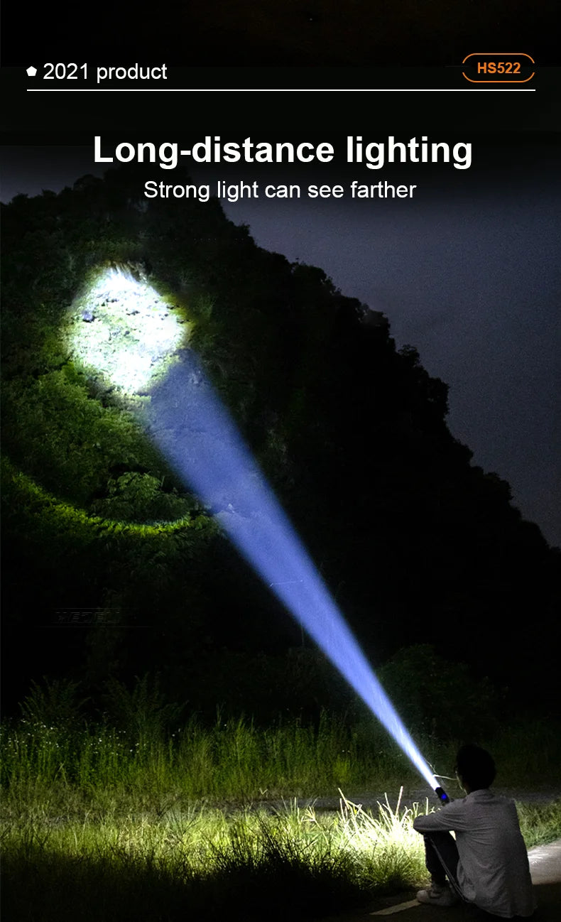 Linterna LED más potente de 8800000LM, 3000 vatios, linterna recargable por USB, linterna táctica de alta potencia de 5500 metros