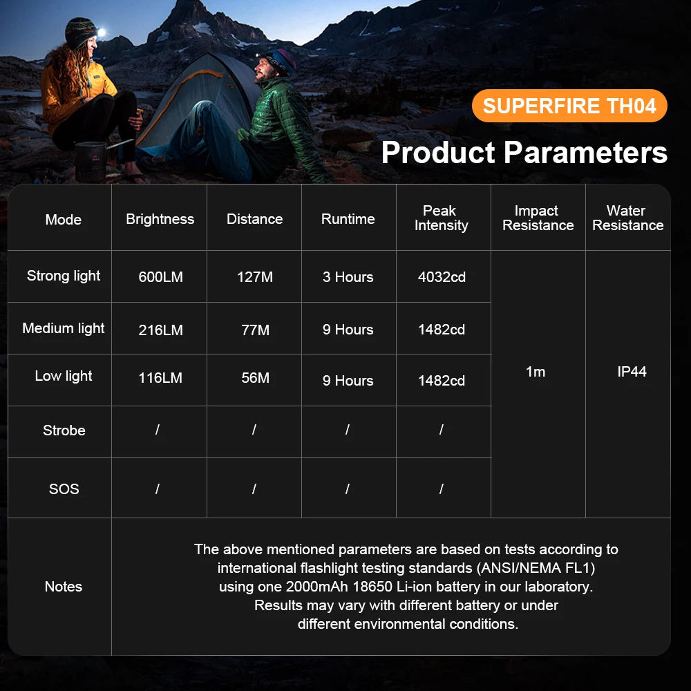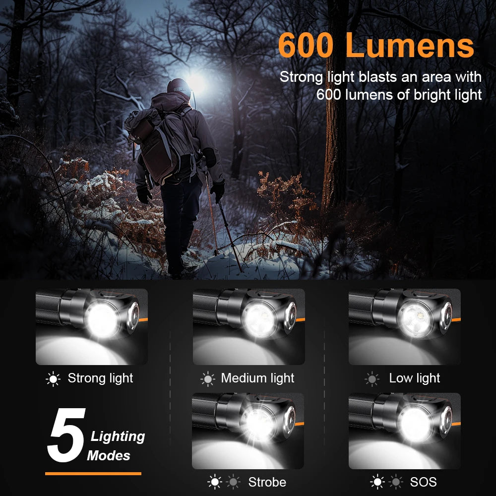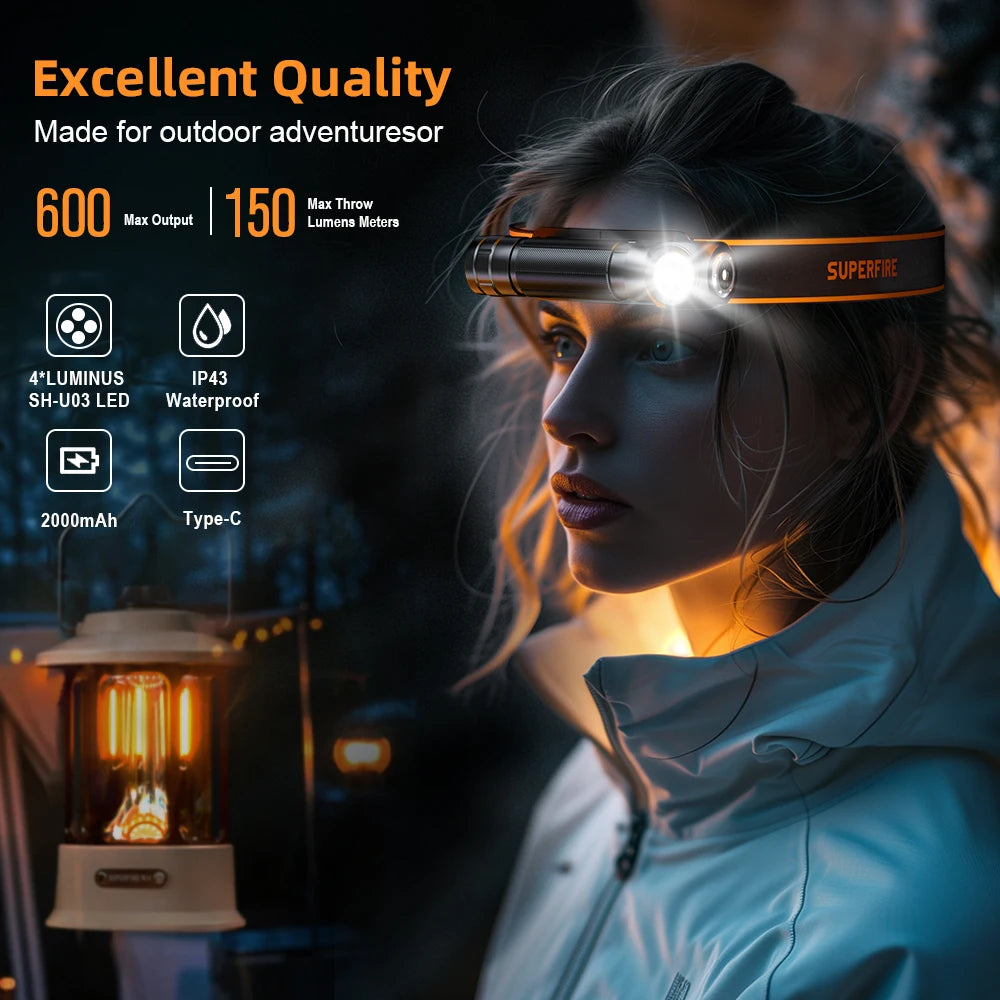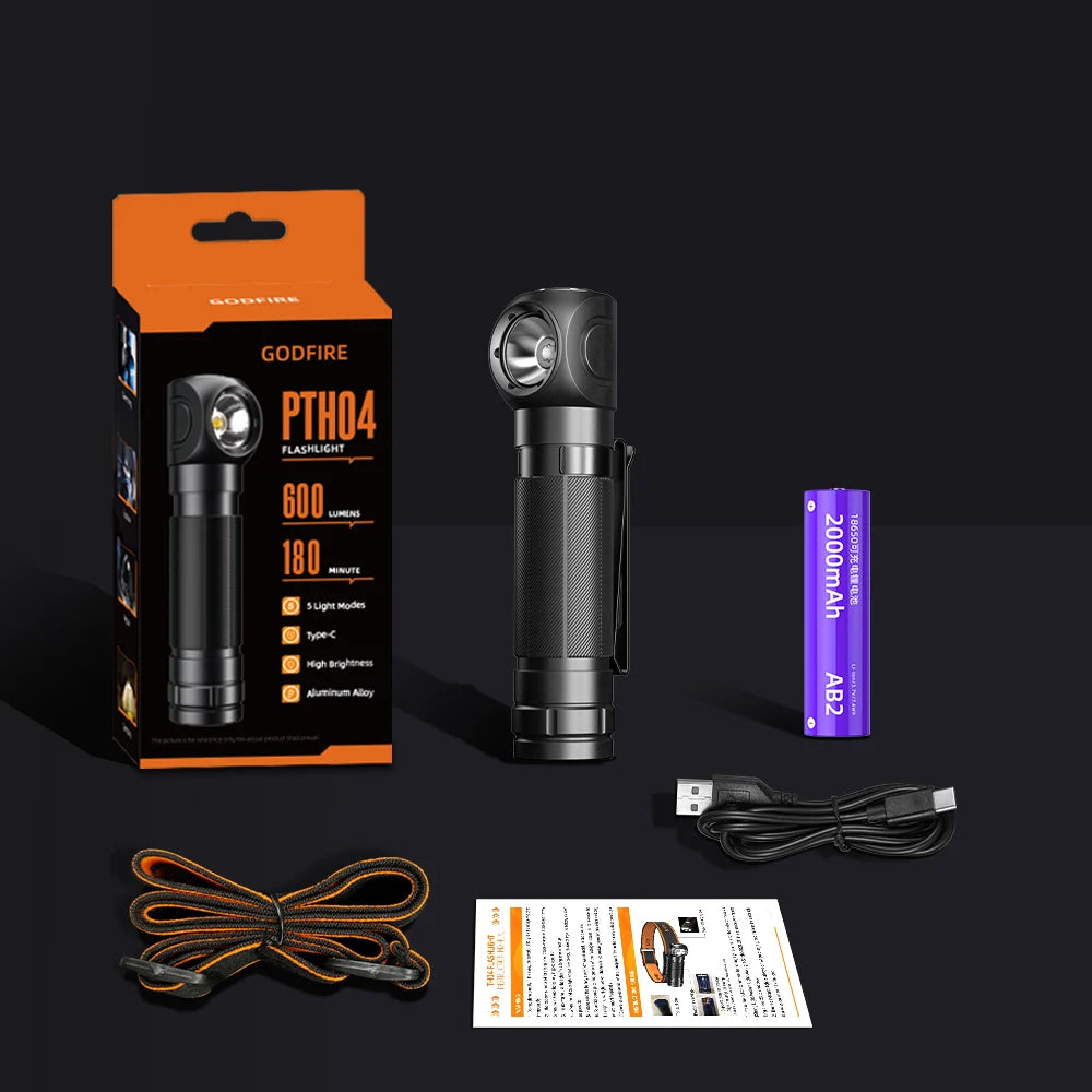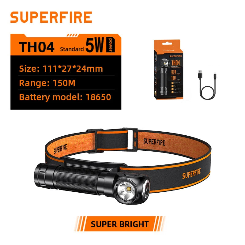 Sold outSUPERFIRE TH04 Type C LED Headlamp 90° Rechargeable Flashlight with Indicates