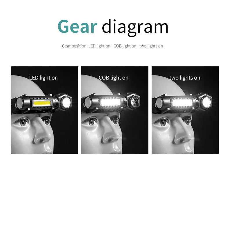 Rechargeable Super Bright LED Headlamp with COB XPE Beads and Back Magnet Rechargeable Super Bright LED Headlamp with COB XPE Beads and Back Magnet