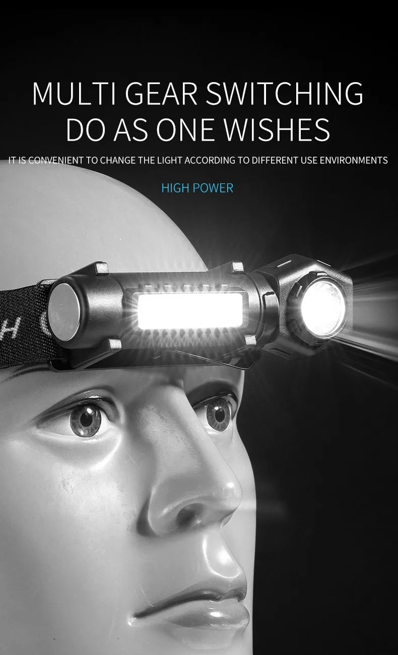 Rechargeable Super Bright LED Headlamp with COB XPE Beads and Back Magnet