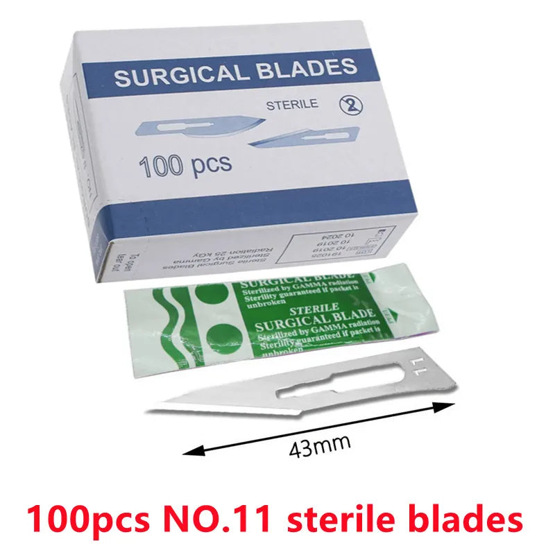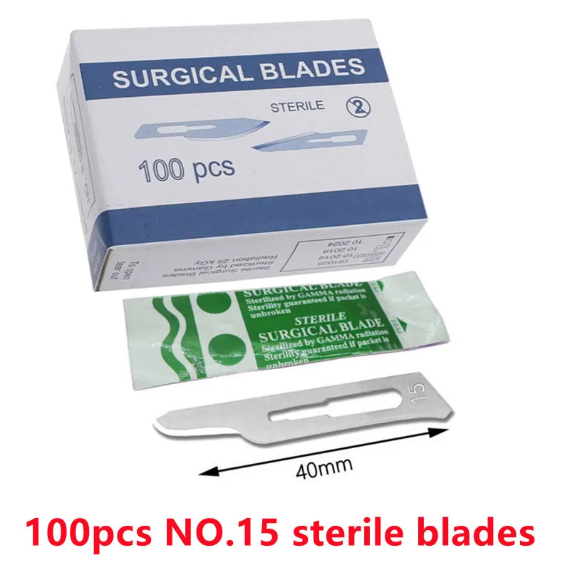 Cuchillas quirúrgicas de acero al carbono estéril, cuchillo de bisturí para corte y reparación de teléfonos, bricolaje, tallado, mantenimiento del cuidado de animales, 20-100 piezas