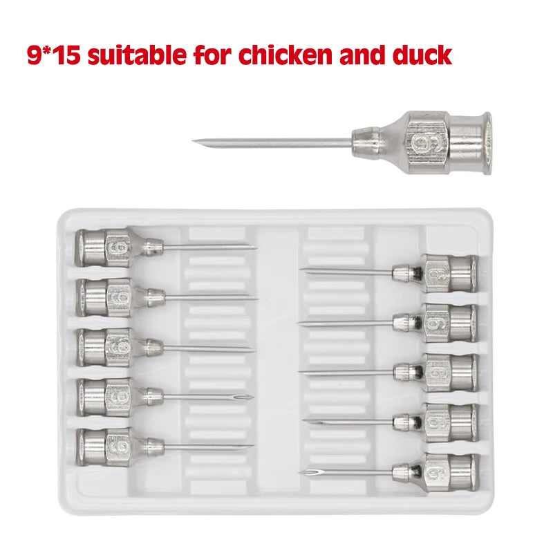 Aguja de inyección para animales de granja, jeringa dispensadora de acero inoxidable 304, suministros veterinarios pequeños para aves de corral, 10 piezas/cajas