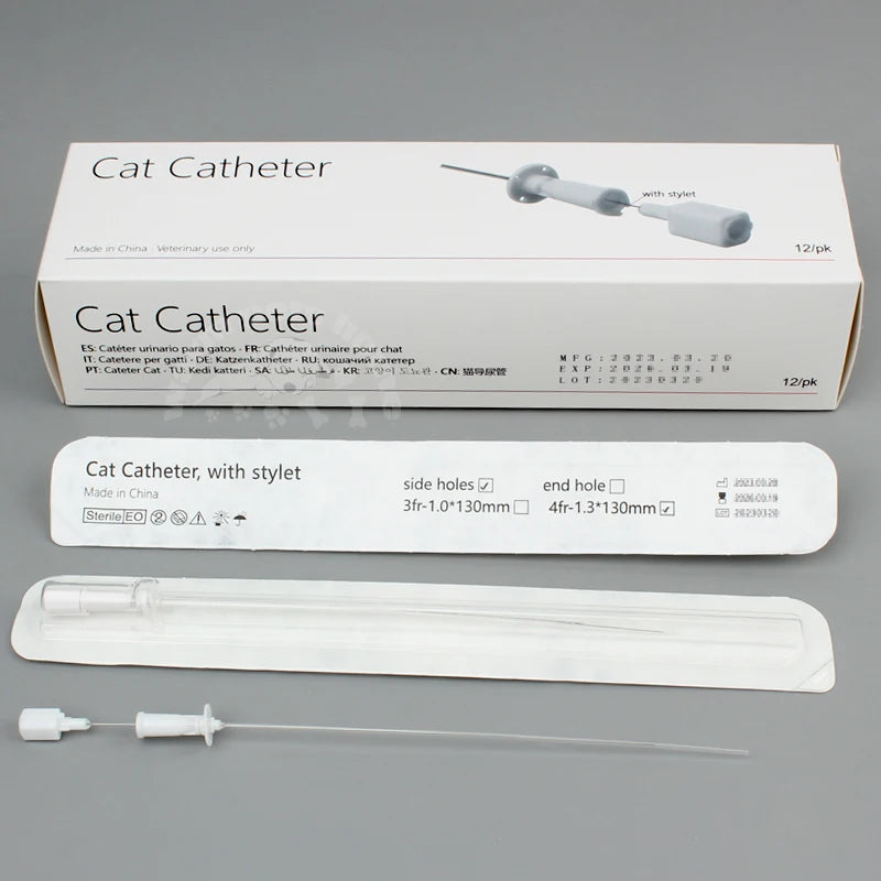 Catéter para gatos con Stylet 3Fr, Agujero final 4Fr, agujeros laterales, catéteres para gatos urinarios veterinarios