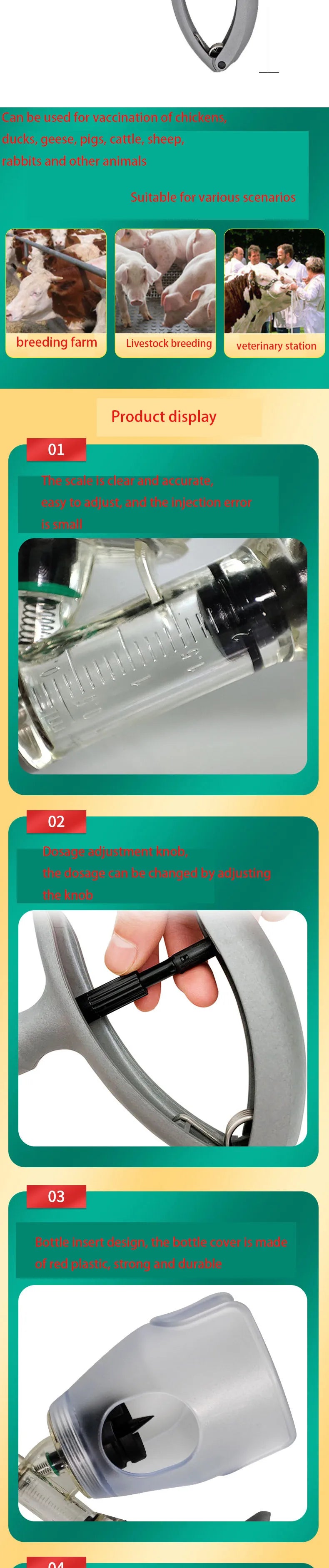 Jeringa continua veterinaria automática para animales, pollo, vaca, inyección ajustable, vacuna, cerdo, oveja, aves de corral, 2ml /5ml Jeringa continua veterinaria automática para animales, pollo, vaca, inyección ajustable, vacuna, cerdo, oveja, aves de corral, 2ml /5ml