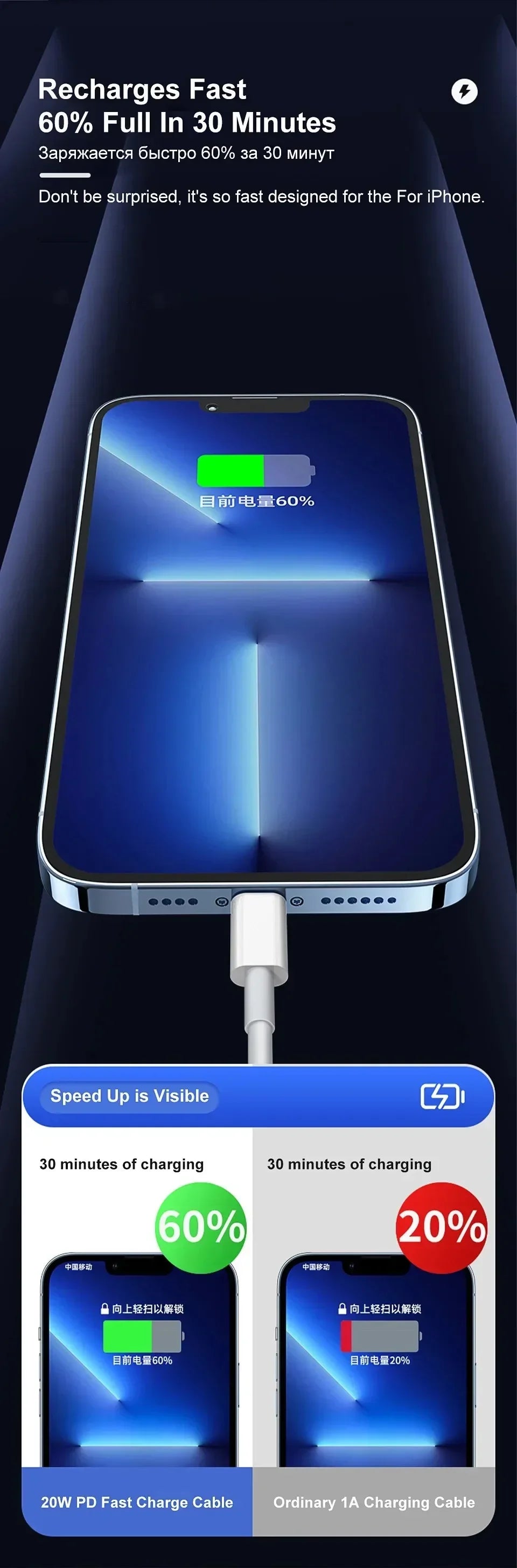 Cable USB de carga rápida para teléfono, sincronización de datos, 0,25 M, 1M, 2M, para iPhone 14, 13, 12, 11 Pro Max, Mini, 6, 7, 8 Plus, XS, X, XR, SE, iPad, 20W