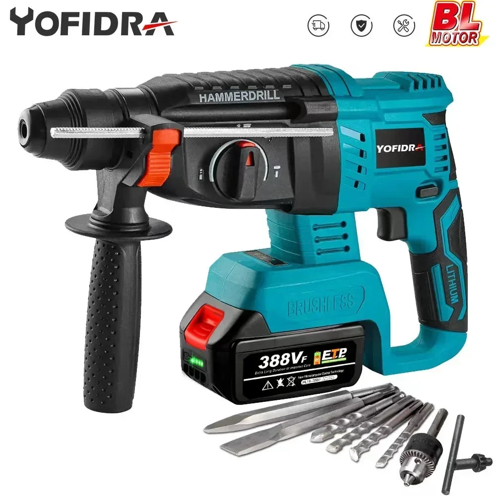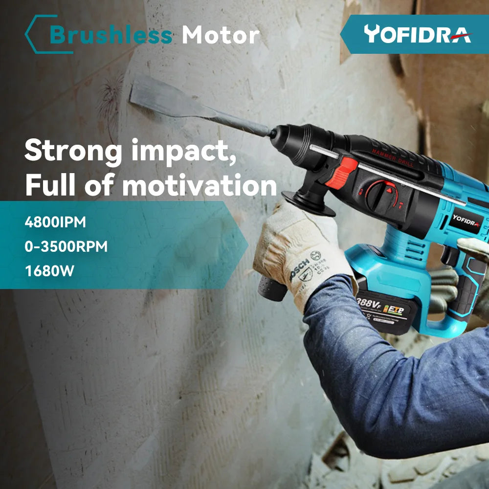 Sold outYOFIDRA-martillo eléctrico sin escobillas de 26MM, taladro rotativo multifuncional inalámbrico, herramientas eléctricas recargables para batería Makita de 18V