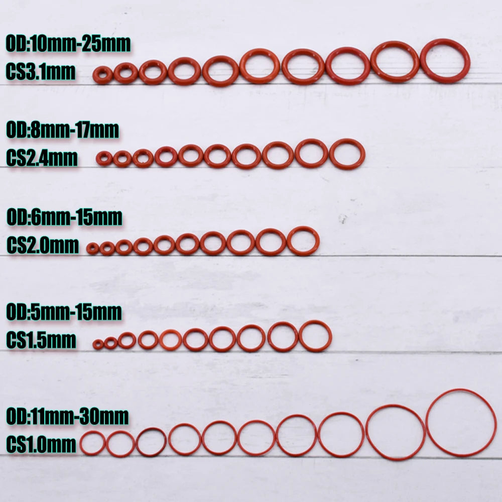 Junta tórica de silicona CS 1/1.5/2.0/2. 1, arandela de sellado, juntas tóricas Rojas VMQ, juntas de fontanería, resistente al aceite, Kit de Oring de alta temperatura Junta tórica de silicona CS 1/1.5/2.0/2. 1, arandela de sellado, juntas tóricas Rojas VMQ, juntas de fontanería, resistente al aceite, Kit de Oring de alta temperatura