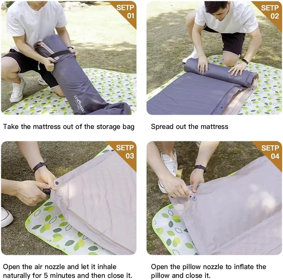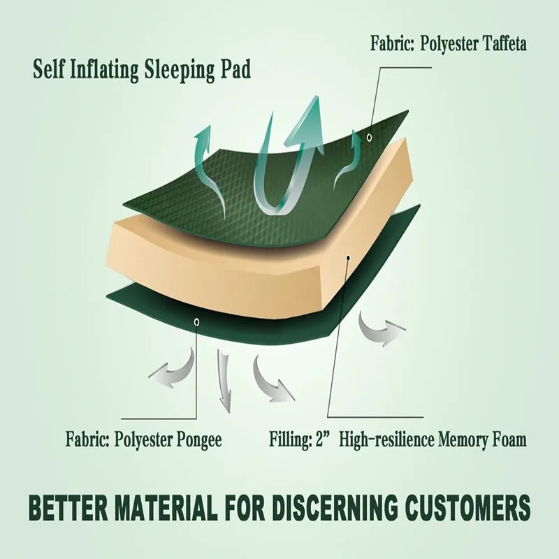 Camping mattress: This camping mattress is very suitable for foam and inflatable sleeping mats. Automatic inflation does not require an inflation pump ... The principle of our sleeping camping mat is that the foam contained in the inflatable camping mat inhales air. Inflated with expanded foam. Inflate the foam camping mattress in 1 minute. The built-in pillow is an added benefit of a good sleep. The pillow does not inflate automatically, so you need to blow air and adjust the air volume