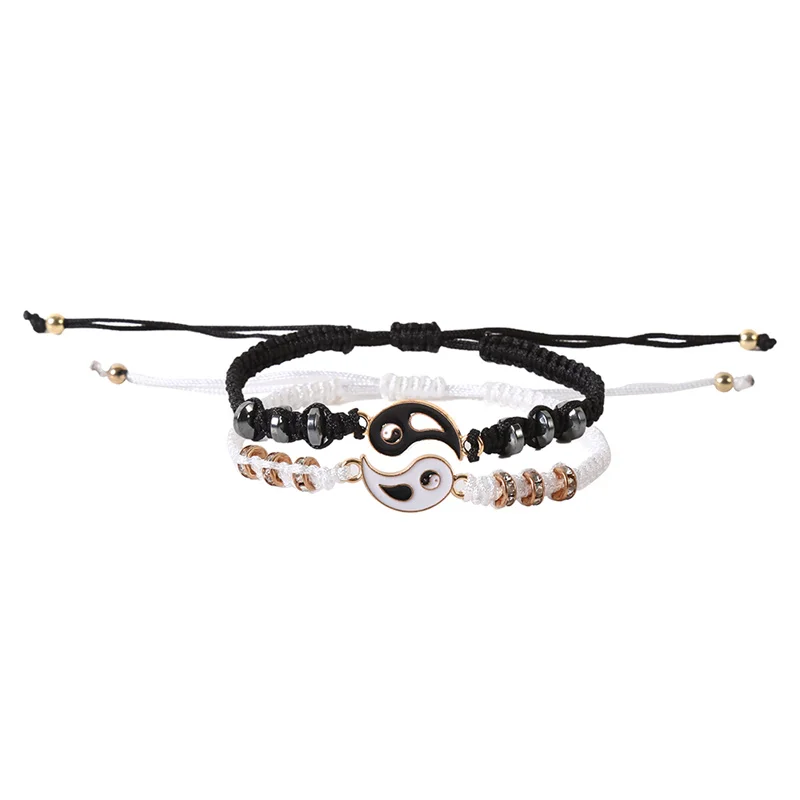 Personalize matching Yin Yang bracelets. They are good matching puzzle couples friendship relationship bracelets. 6 beads on the bracelet are inlaid with diamonds. Like your unique friendship and love.