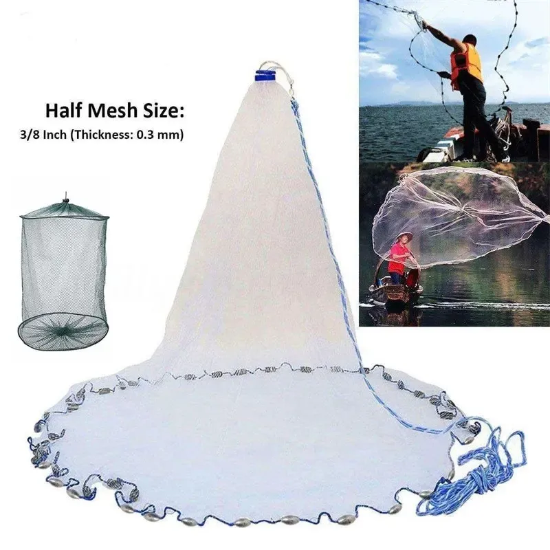 Rayo de 3,4 pies, malla de 3/8 pulgadas que se adapta a la mayoría de las especies de cebo.