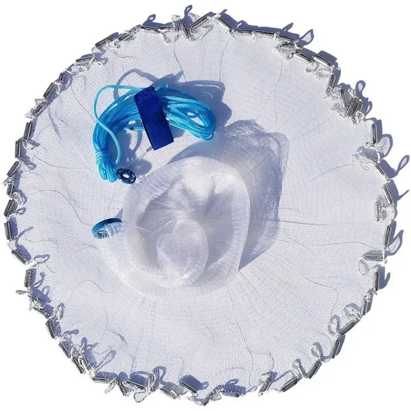 Redes de pesca fundidas con plomada, Radio de 2,4 m, redes de trampa de pesca de lanzamiento manual, red de peces de malla pequeña americana pesada con maceta para camarones