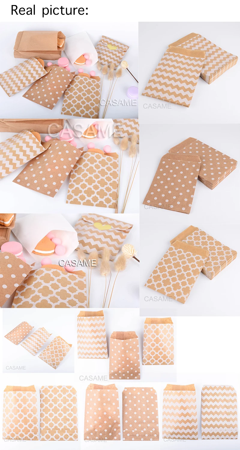 Bolsas de papel Kraft de estilo mixto, embalaje de decoración artesanal, bolsa