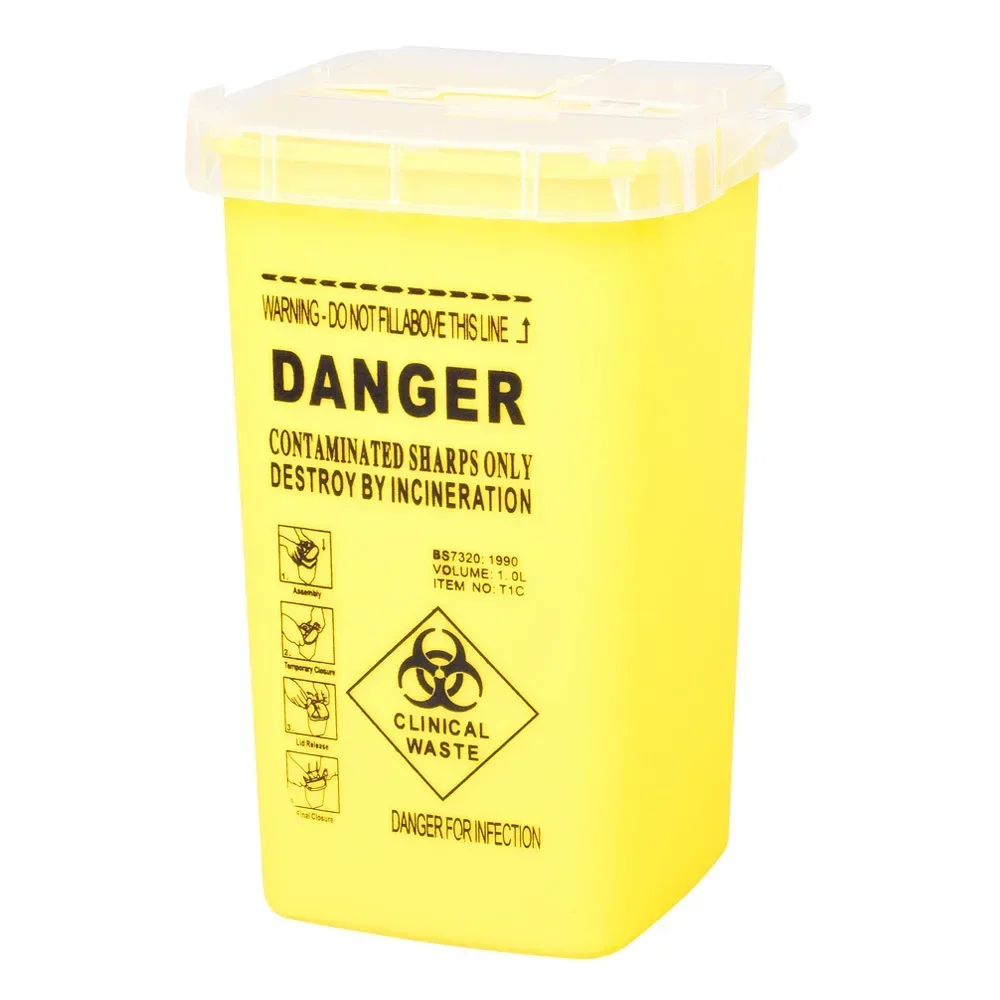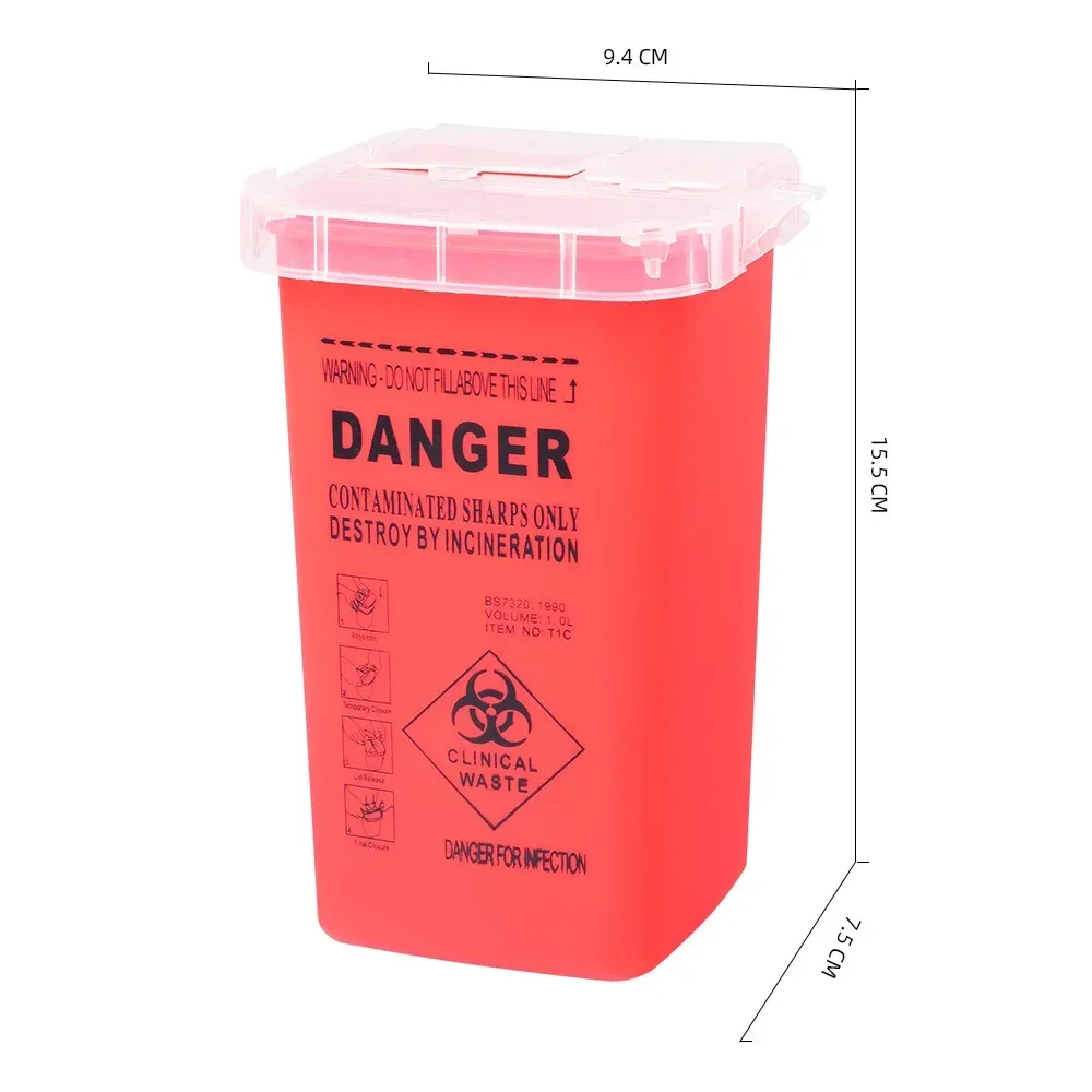 1L caja de plástico para residuos de tatuajes, suministros médicos, contenedor desechable, Microblading, puntas de aguja, accesorios para cejas