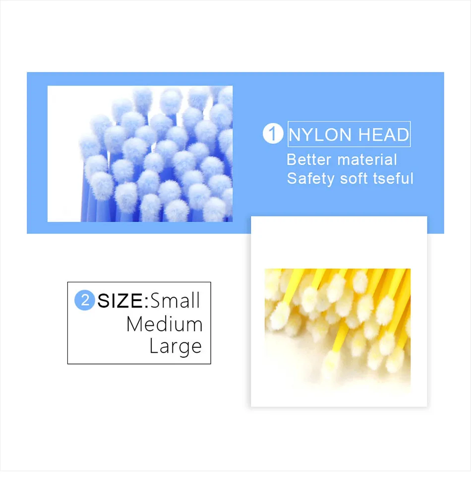 Tienen un poco de algodón en el extremo, ayuda a que la aplicación sea precisa y no absorbe demasiado del preciado producto. Característica:1, los microcepillos dan a las mujeres un gran producto para aplicar en las pestañas2, los microcepillos cuentan con una punta de precisión ideal para una variedad de usos para la belleza y el cuidado de la salud.3, La punta antigoteo los hace ideales para usar alrededor del área de los ojos.4, Su uso posterior hace que sean fáciles de usar y menos costosos que el uso de otros cepillos que necesitan limpieza sanitaria.5. Estos funcionan perfectamente para servicios de pestañas como el levantamiento de pestañas y el teñido de pestañas. Micro cepillos Introducción:Los microaplicadores de brochas consisten en fibras no pelusas y no absorbentes dispuestas en forma esférica. Contiene soluciones en Tuspension, eliminando el goteo, derrames y residuos. La parte flexible permite una aplicación precisa en áreas difíciles de alcanzar.Embalaje: cambiamos el embalaje con bolsa OPP en lugar de botella de plástico para evitar roturas. Lista de embalaje100 microcepillos sin pelusa Nota:1. Debido a la diferencia entre los diferentes monitores, es posible que la imagen no refleje el color real del artículo. Garantizamos que el estilo es el mismo que se muestra en las imágenes.