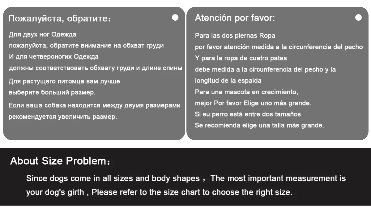 -Los productos de 6 tamaños () son adecuados para la mayoría de los perros. Utilice una Regla suave para medir el busto de su perro antes de elegir un tamaño. Puede elegir un tamaño grande si el perro tiene entre 2 tamaños.