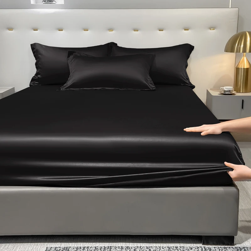 Colcha de seda de hielo para hombre y mujer, ropa de cama de satén negro, Color