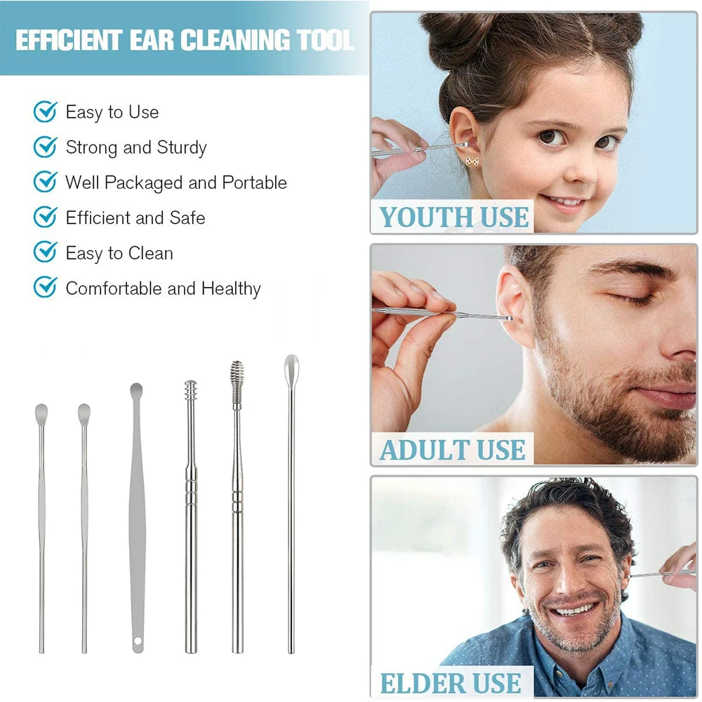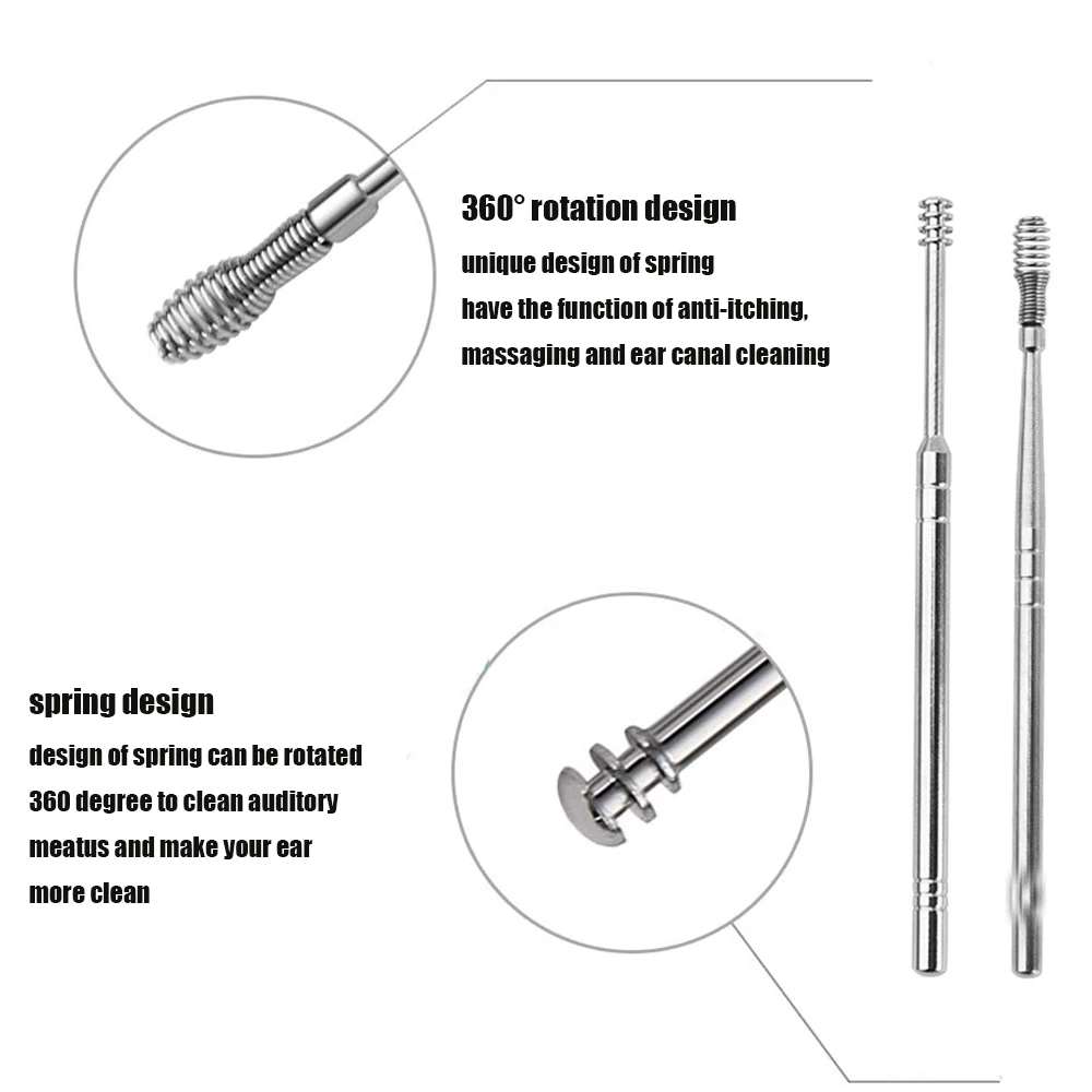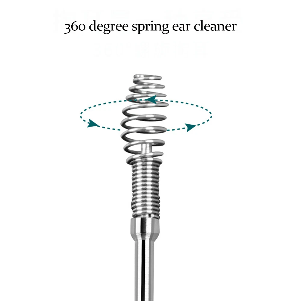 El innovador kit de limpieza de cerumen de resorte es una innovadora herramienta de limpieza de oídos, segura e indolora. Está hecho de acero inoxidable de alta calidad y está diseñado específicamente para extraer el exceso de cera de forma segura y cómoda.