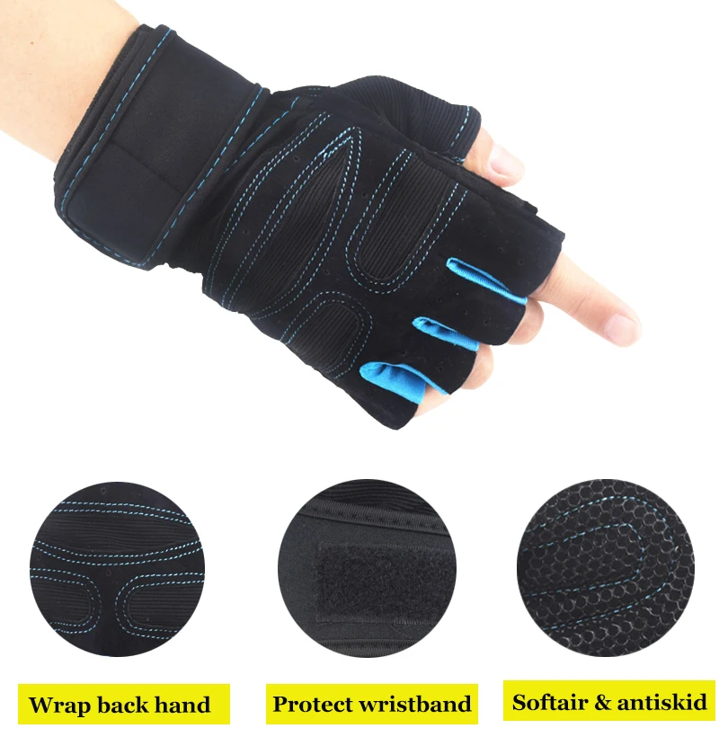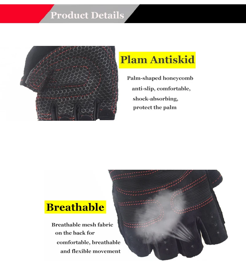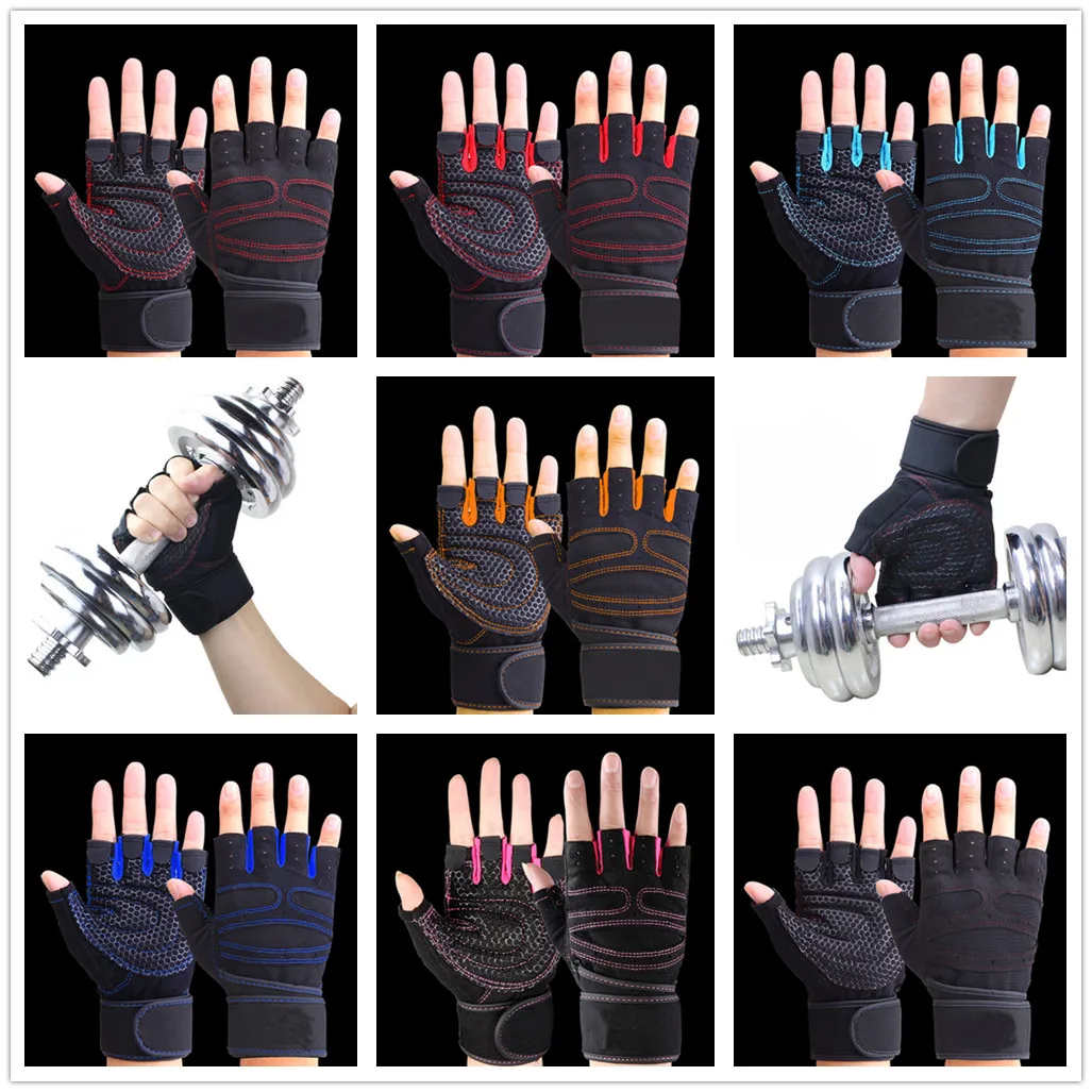 Guantes de Fitness para levantamiento de pesas para hombres y mujeres, gimnasio, ciclismo, Yoga, culturismo, entrenamiento, transpirables, antideslizantes, guantes de medio dedo