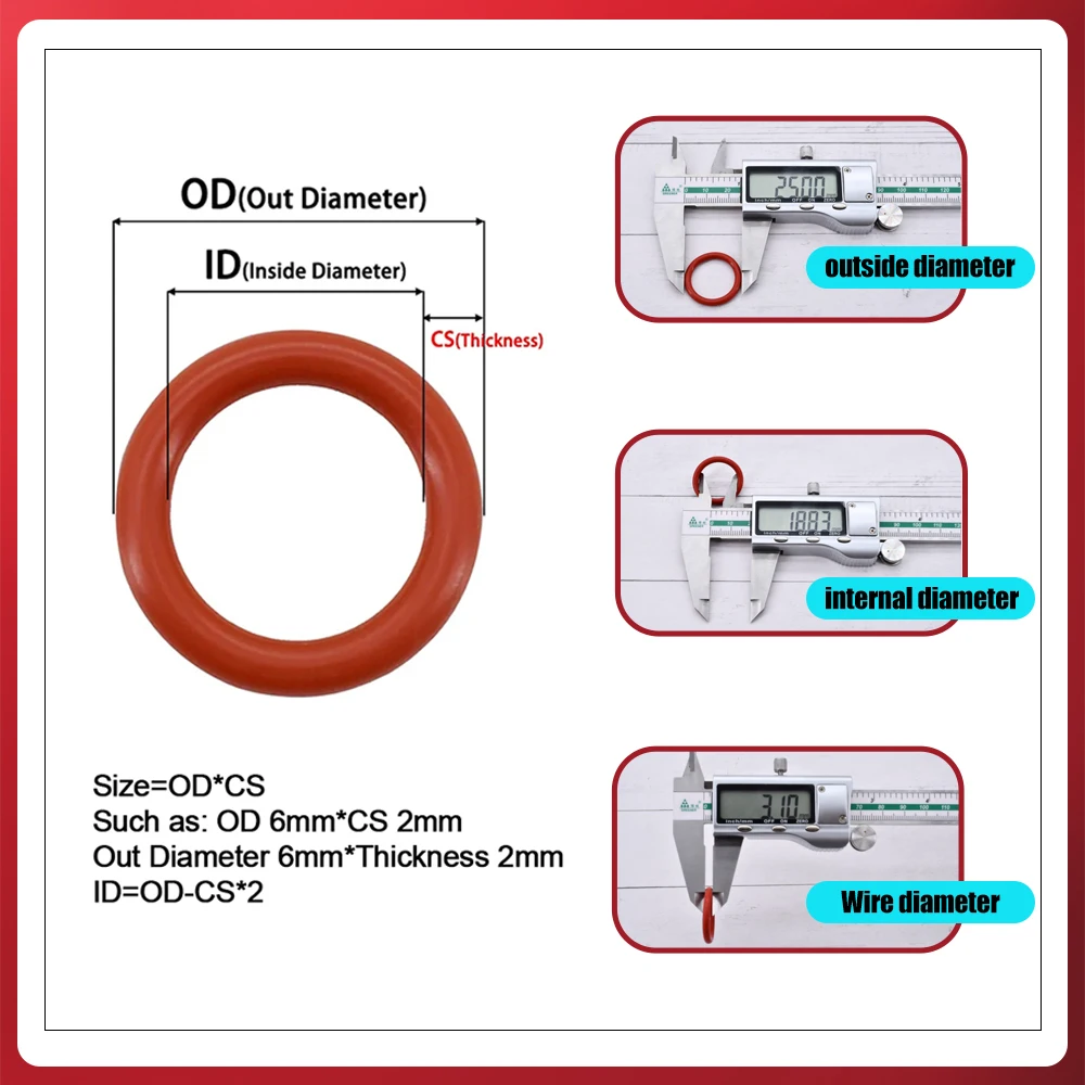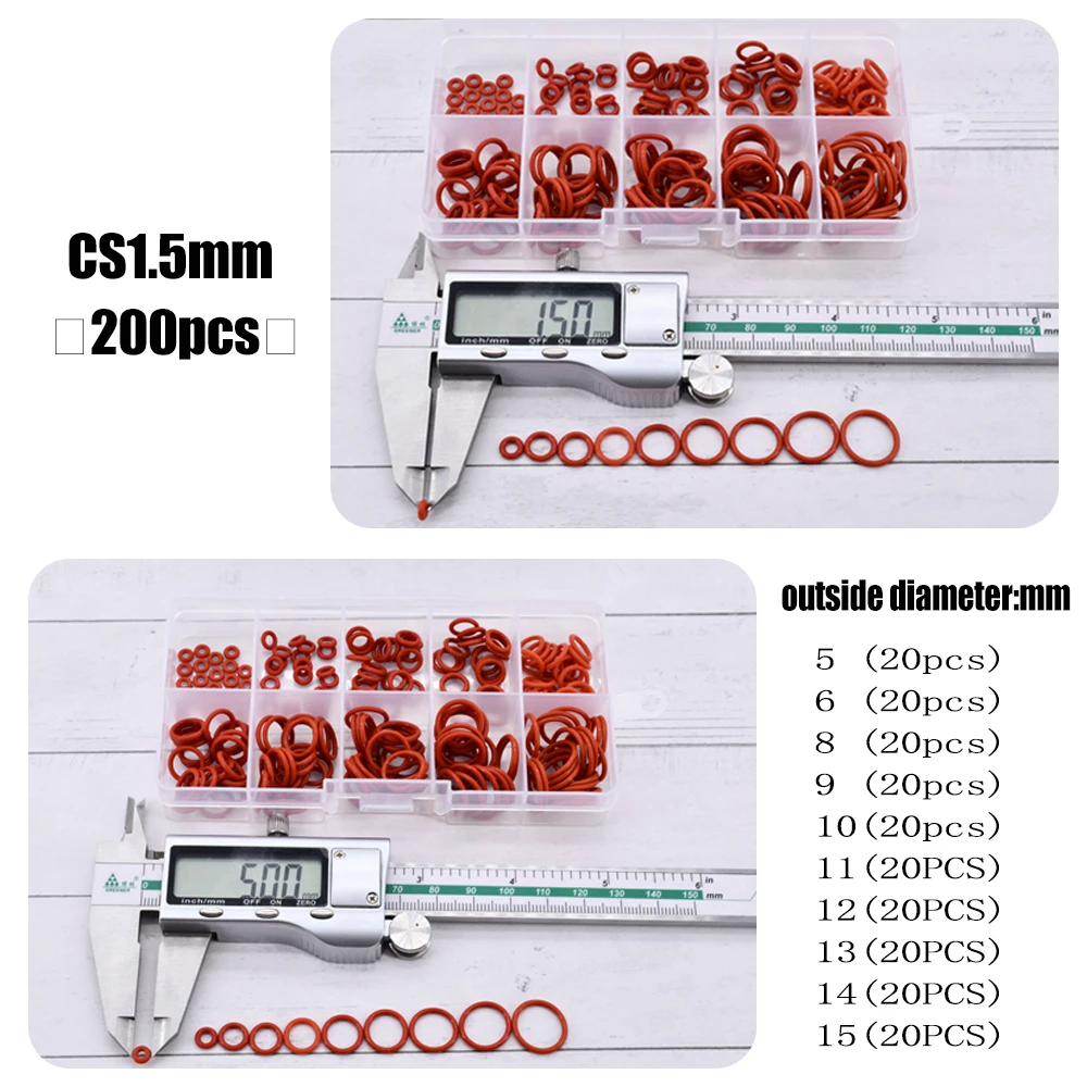 Junta tórica de silicona CS 1/1.5/2.0/2. 1, arandela de sellado, juntas tóricas Rojas VMQ, juntas de fontanería, resistente al aceite, Kit de Oring de alta temperatura
