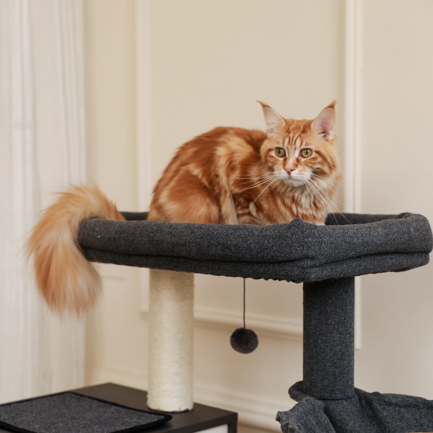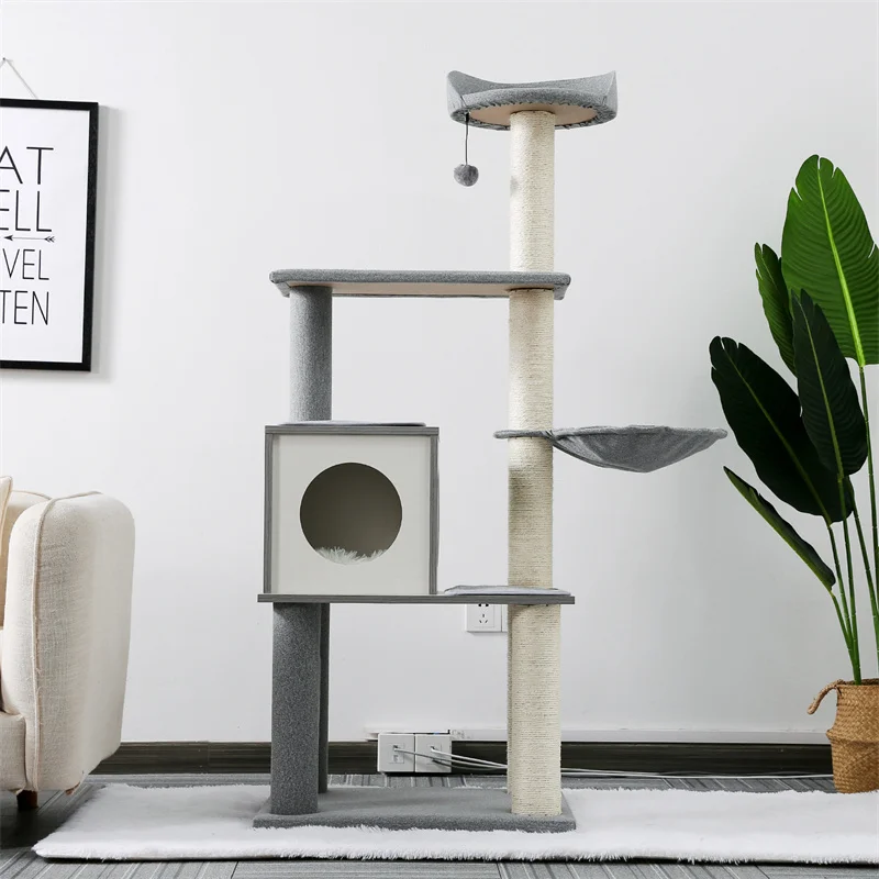 Los gatos pueden acostarse en la hamaca en el nivel superior.