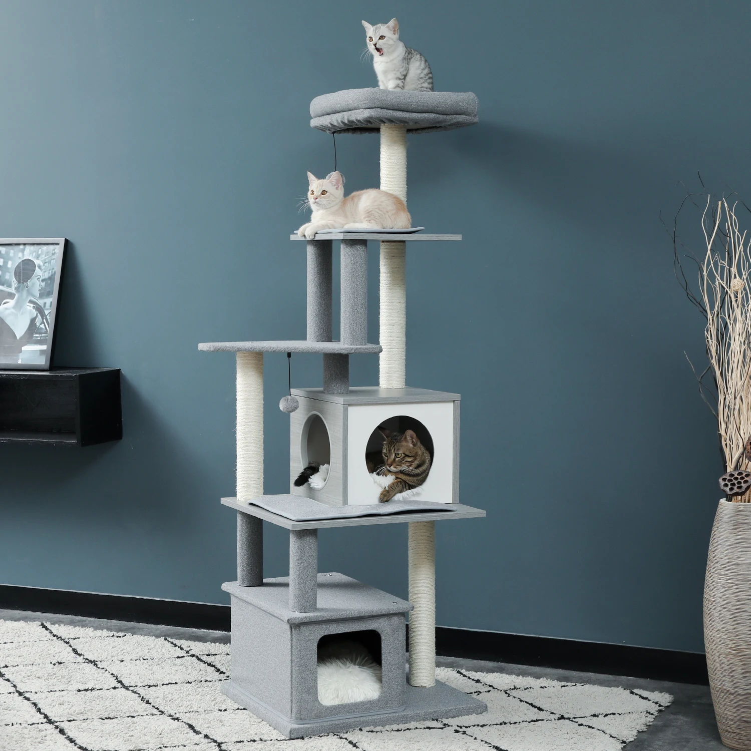 Torre de árbol de madera para gatos, rascador juguete, gato, arbre, chat, madera, altura ajustable, Vertical, piso a techo, lujo