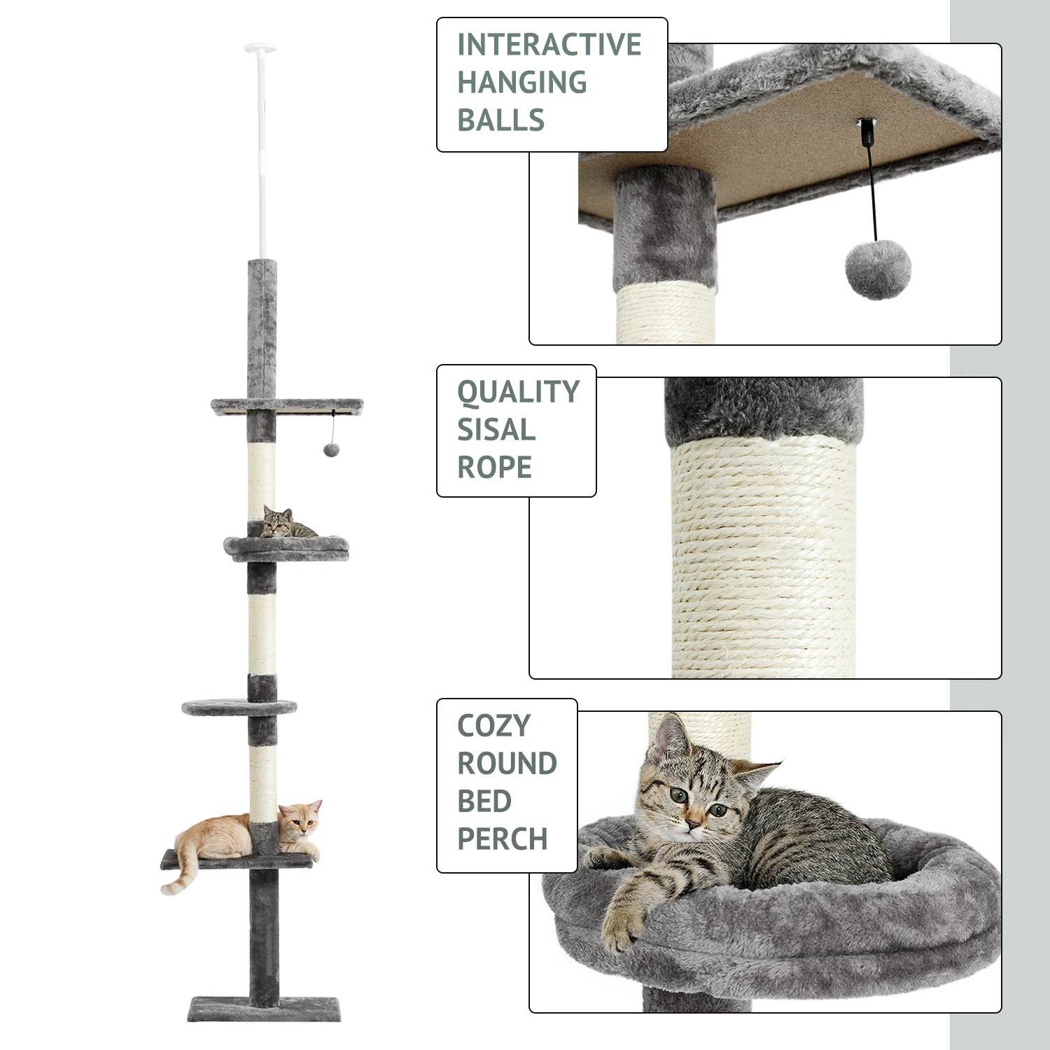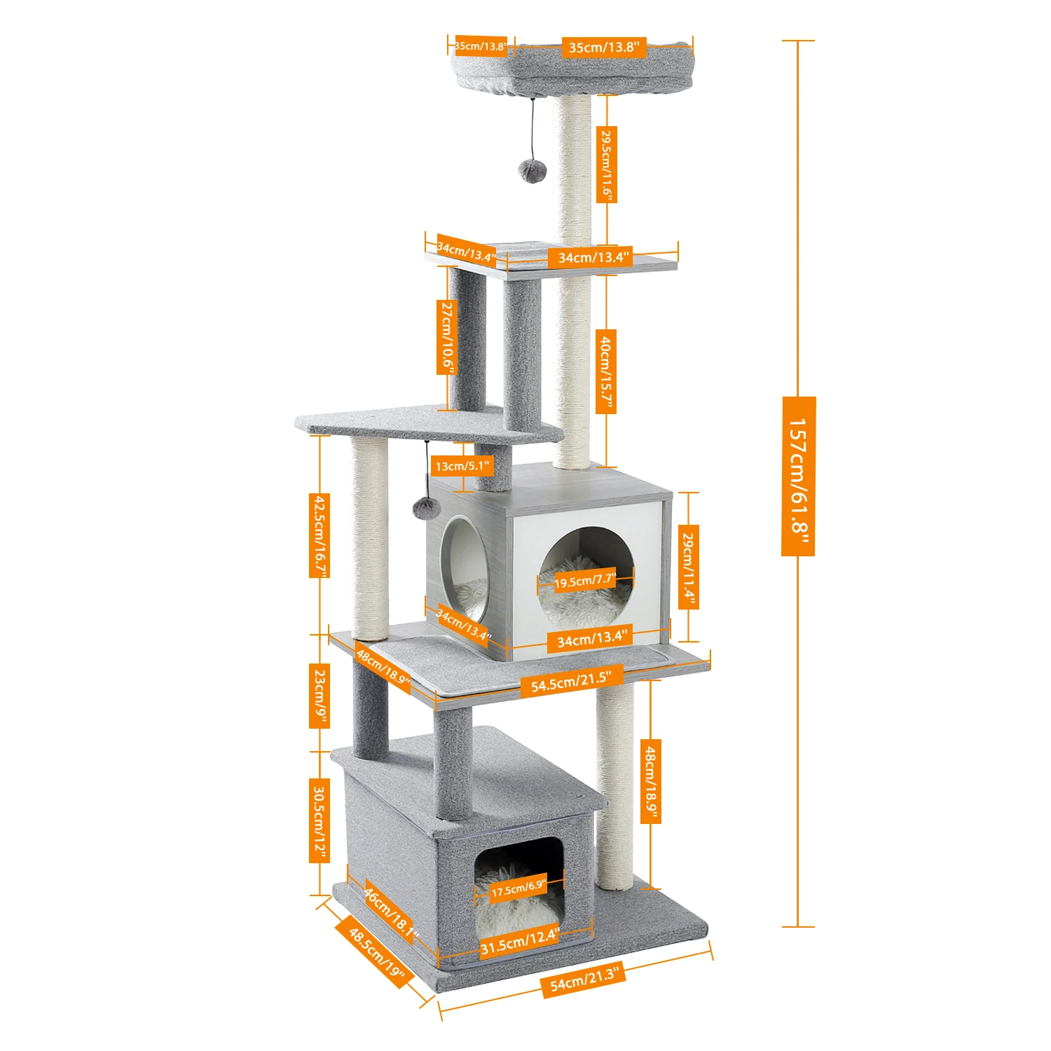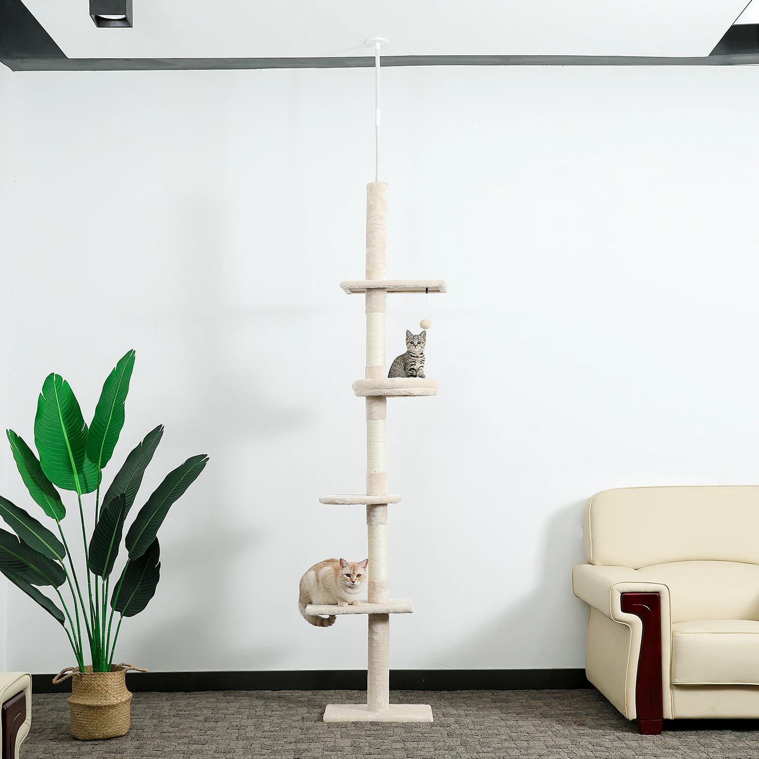 Torre de árbol de lujo para gatos con gabinete de madera de altura ajustable de piso a techo Vertical Cat Tree Post Toy rascador gato arbre à chat