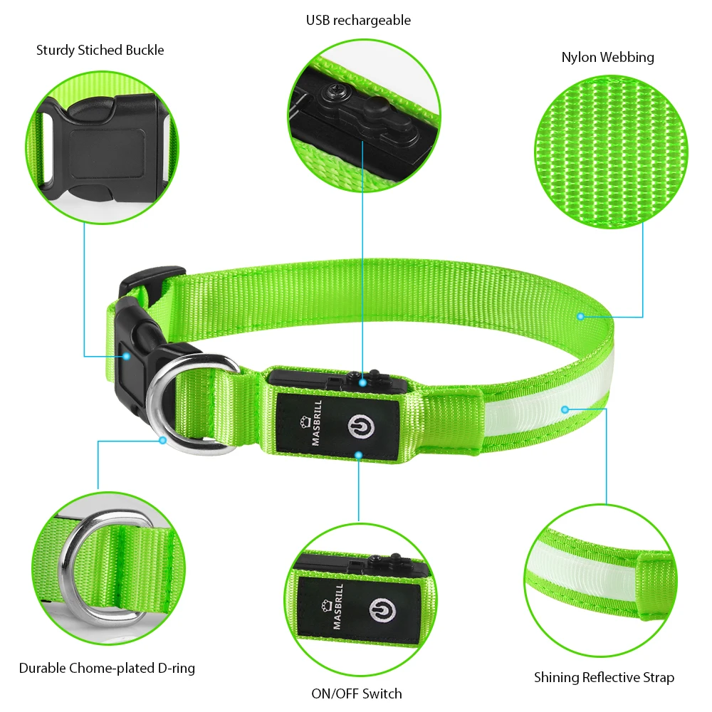 MASBRILL Collar de perro ajustable táctico perros collares mascota luminoso intermitente collar