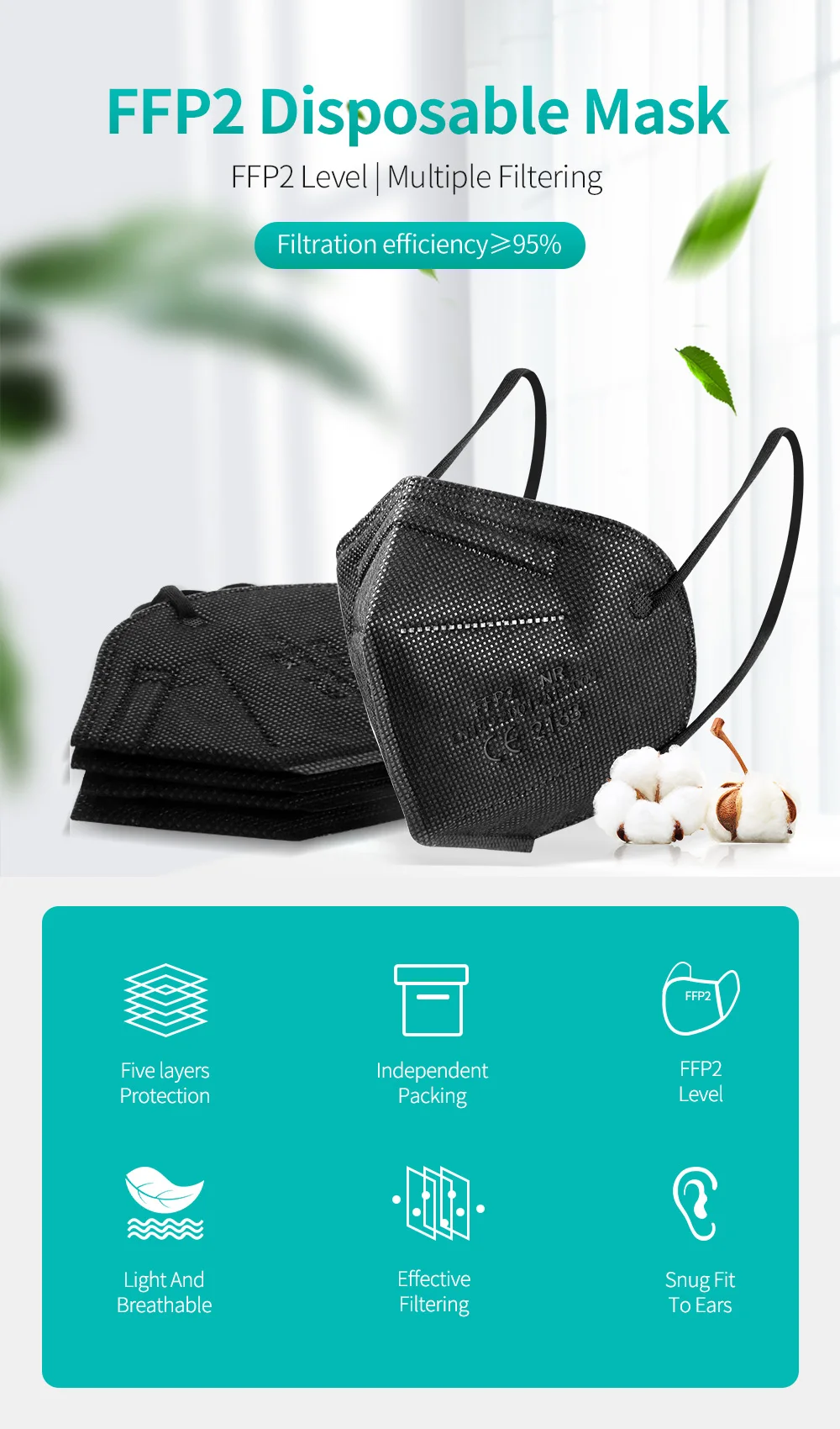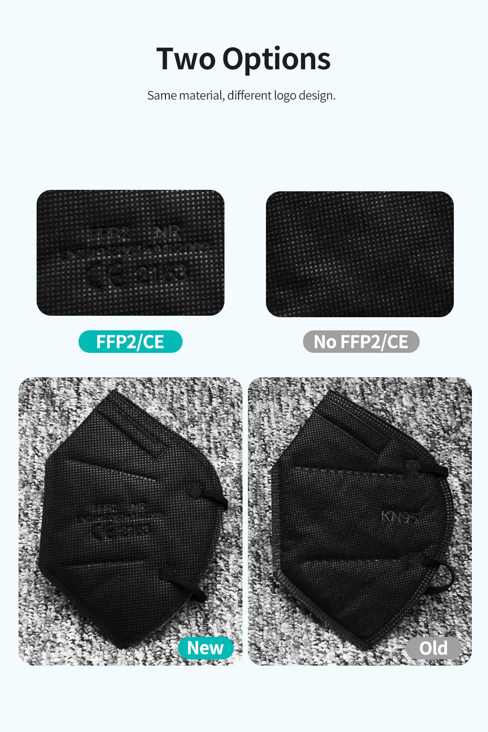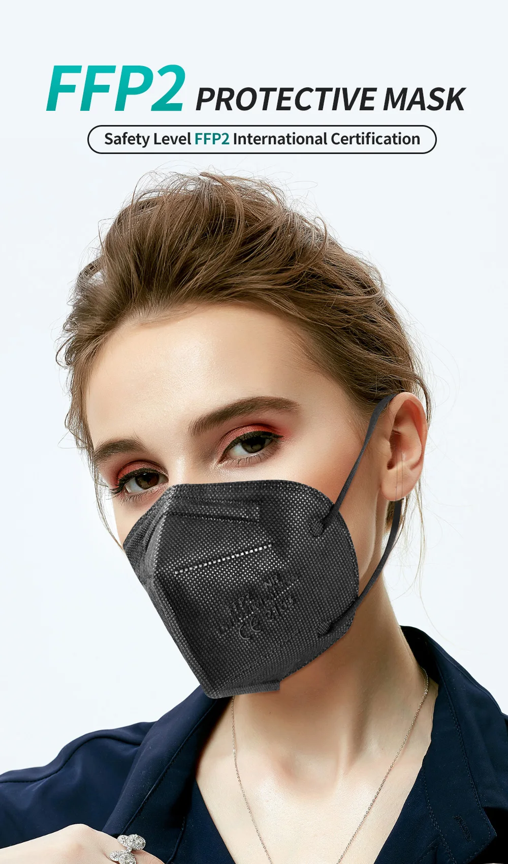 Mascarillas FFP2 de 5 capas Aprobadas por La CE KN95 Melt-blown 95% Filtrado Adulto Multi-colores Negro Rosa Azul Bolsa Paquete FFP2 NR EU Entrega rápida