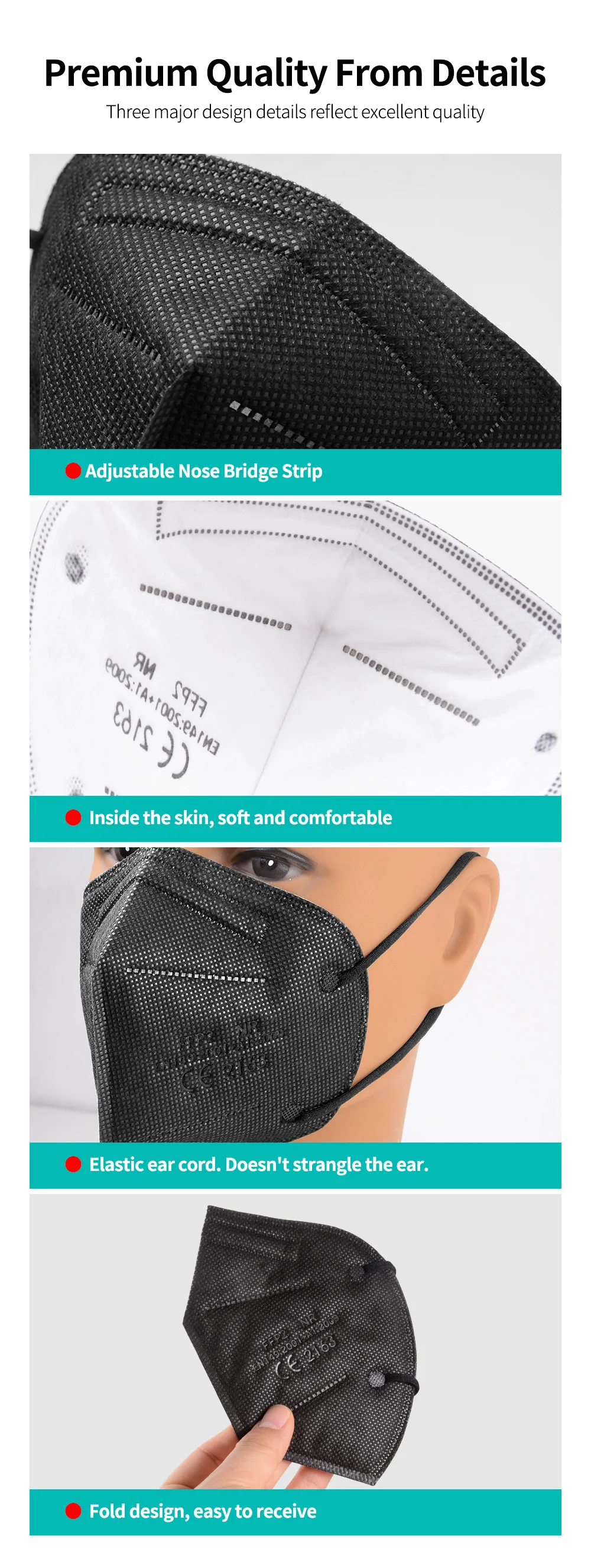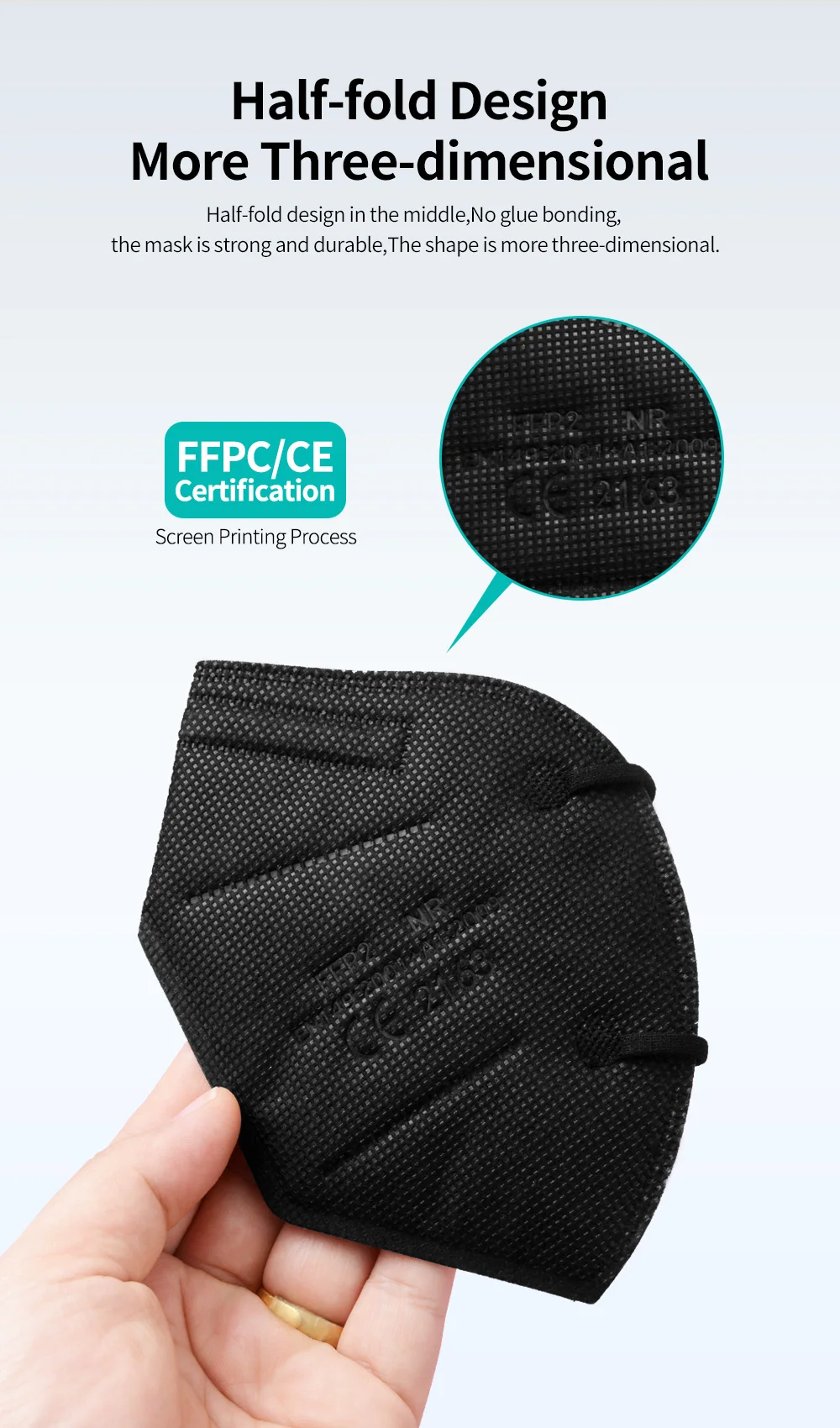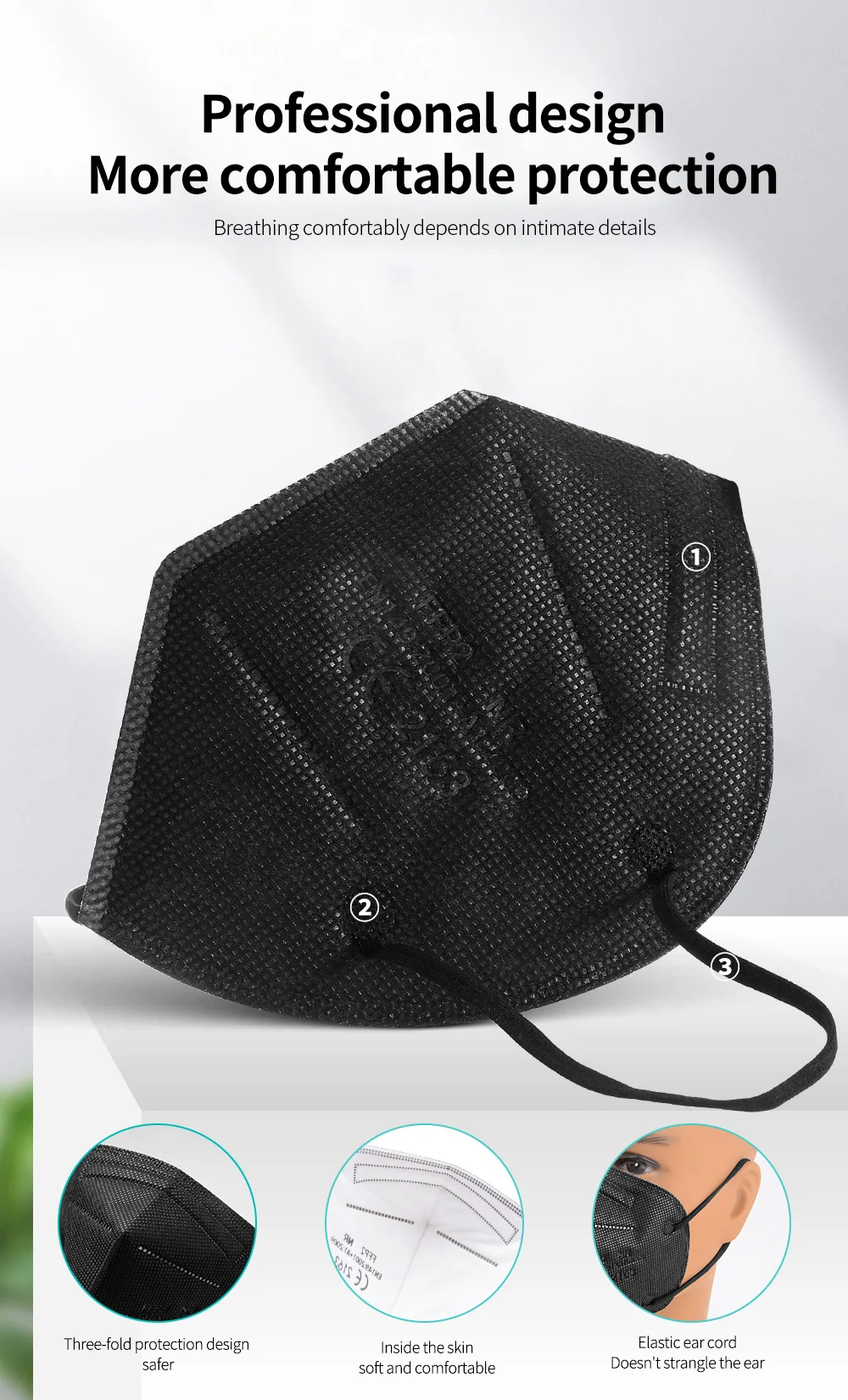 Mascarillas FFP2 de 5 capas Aprobadas por La CE KN95 Melt-blown 95% Filtrado Adulto Multi-colores Negro Rosa Azul Bolsa Paquete FFP2 NR EU Entrega rápida