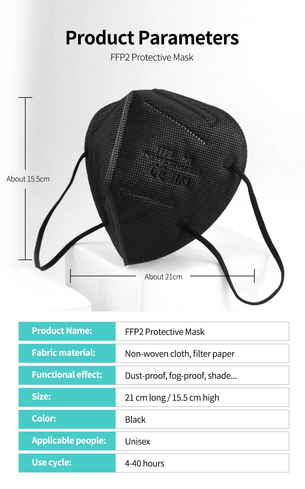 Mascarillas FFP2 KN95 para adulto, máscara de protección de seguridad de 5 cap