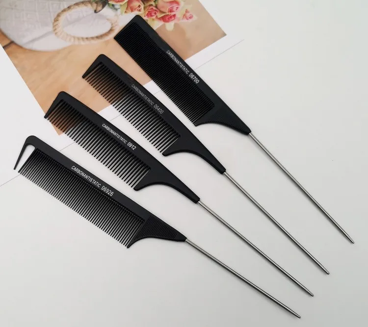 Peine de cola de pelo profesional, peine de corte de salón de acero inoxidable