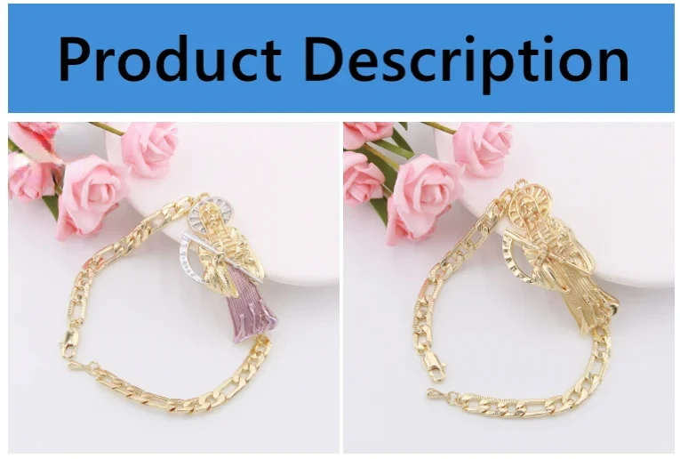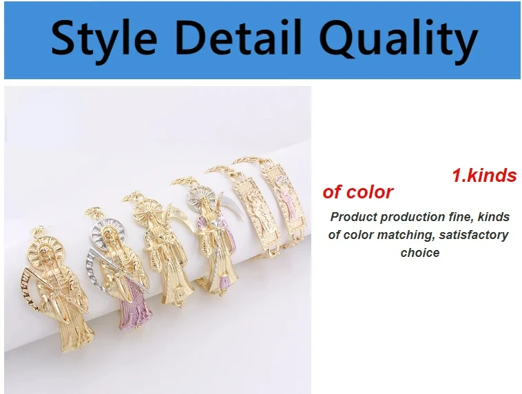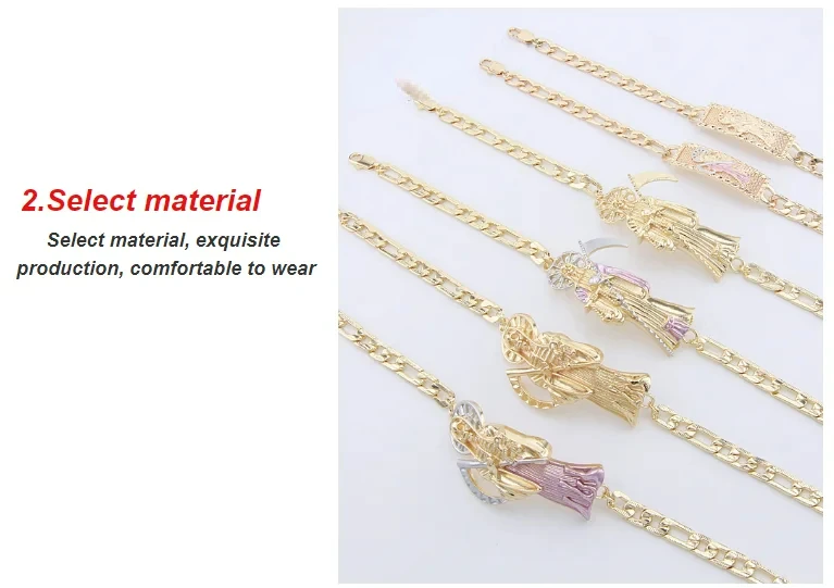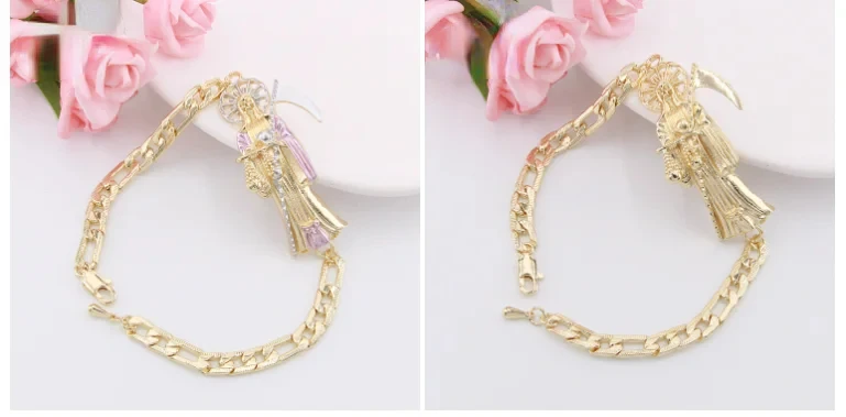 Hombres Pulseras Oro Laminado 14K 18K chapado en oro joyería religiosa Santa muerte Santa Muerte pulsera encantos al por mayor | ||||
