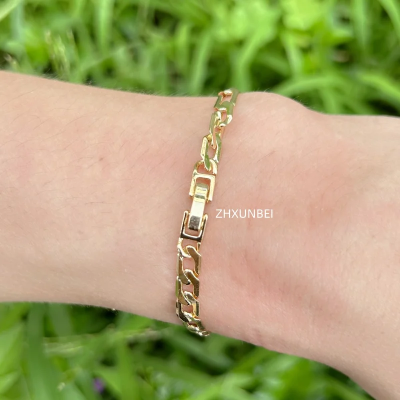 Pulseras chapadas en oro de 14K para mujer, cadena Figaro de cobre mexicano, joy