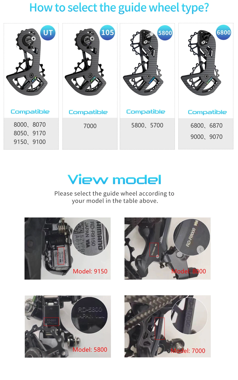 La serie 105 kit se divide en el nuevo R7000 y el viejo 5800 y por debajo de los modelos. Sus ruedas de guía aplicables son diferentes. Si su modelo es 105-5800 y por debajo, compre la rueda de guía 5800. Si su modelo es 105-R7000, compre la rueda guía 105. El orden de confirmación del modelo es: 105 Series, (...) modelo