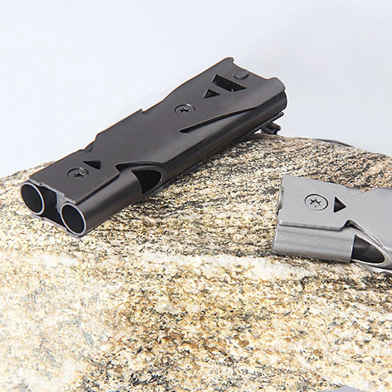 Silbato portátil de aleación de aluminio, 180 db, doble tubo, salvavidas, emergencia, SOS, Kit de herramientas de supervivencia, equipo de Camping al aire libre