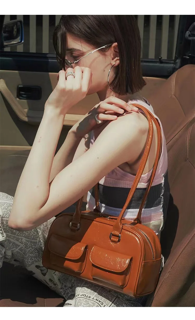 XOUHAM-Bolso Retro rojo para mujer, PU con múltiples bolsillos Cartera de cuero, de diseñador de lujo, para hombro y axilas